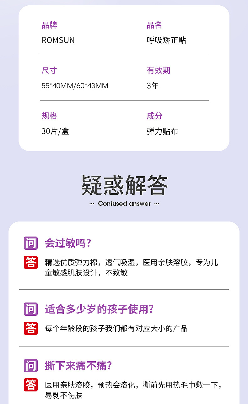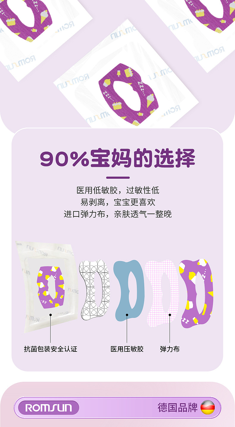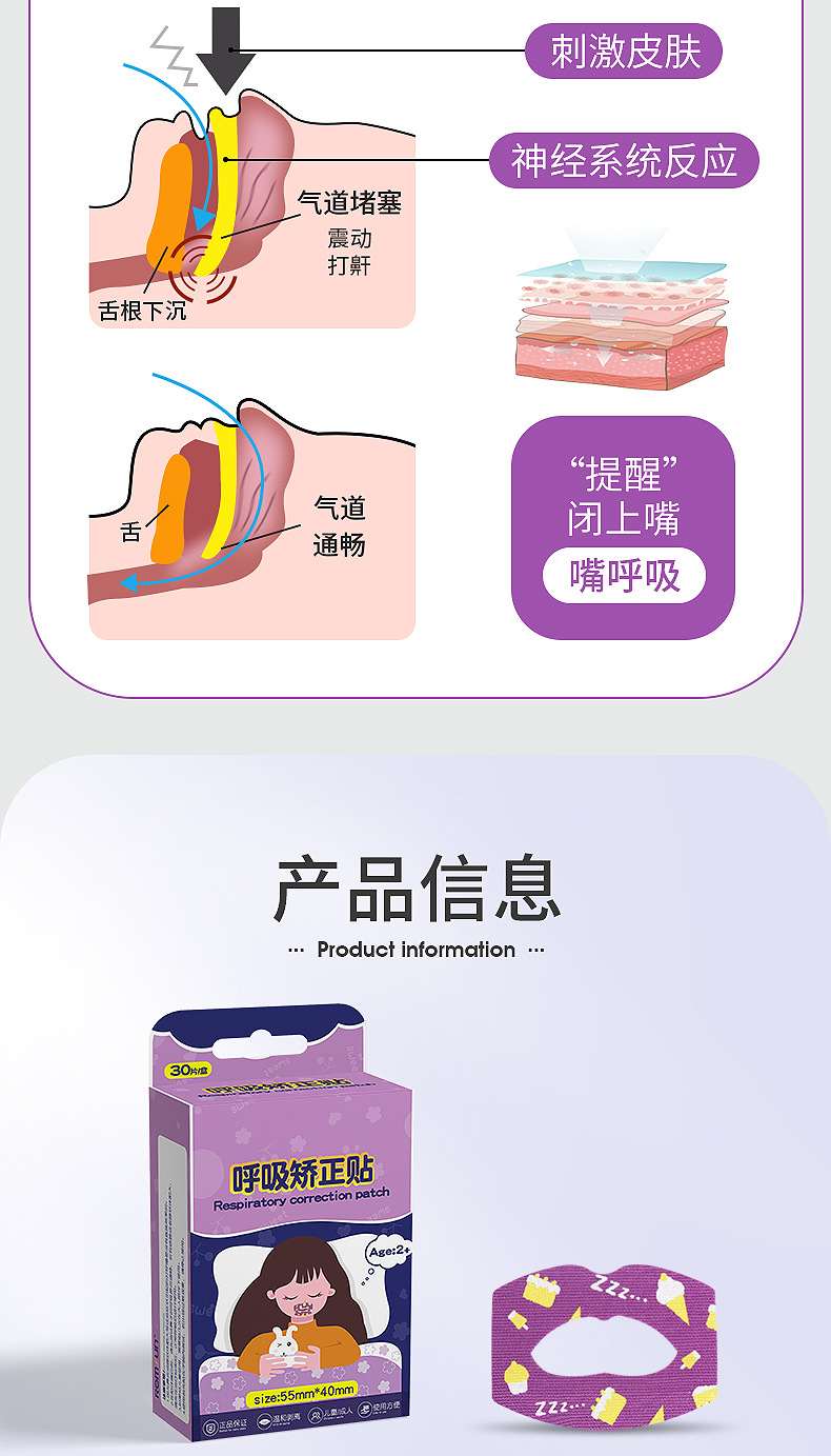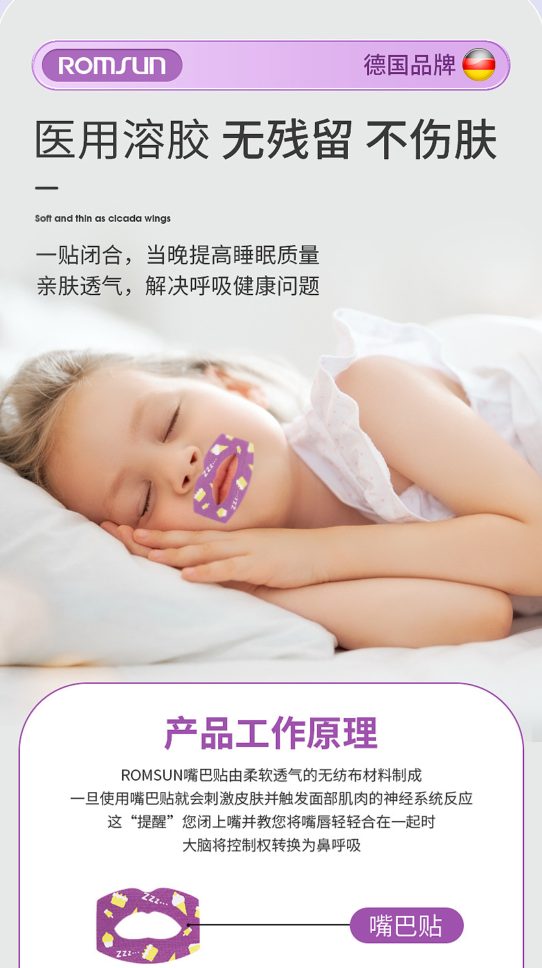 儿童呼吸闭口贴闭嘴贴口呼吸矫正贴防张嘴封口贴止鼾呼贴工厂批发