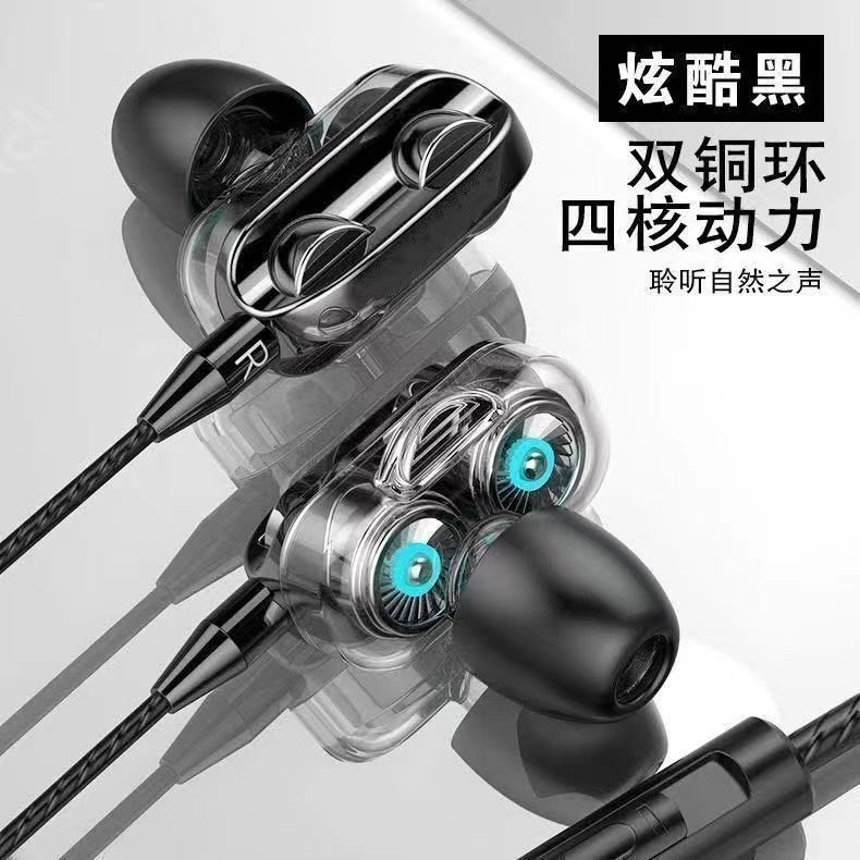 新型ダブルリング入耳式イヤホン重低音携帯電話共通適用リンゴoppo vivo華為粟
