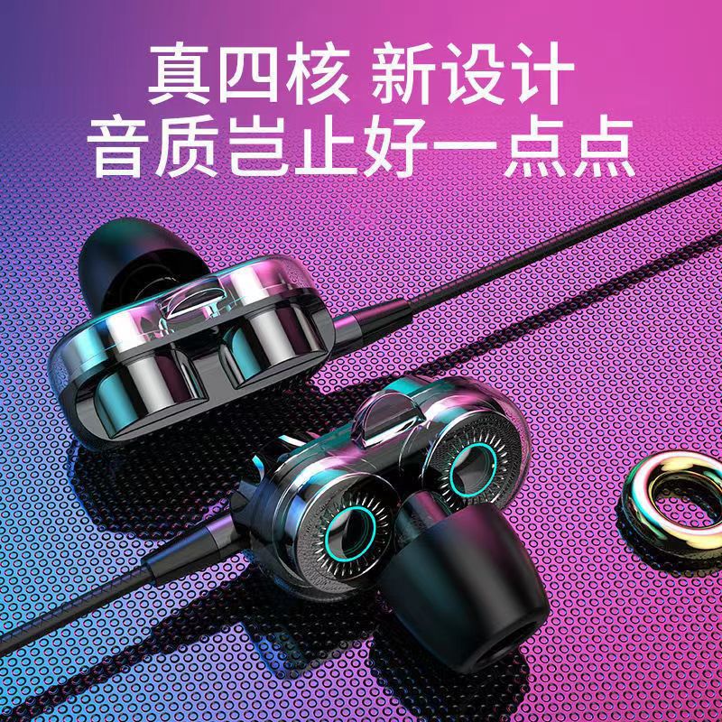四核二重動輪入耳式線制御イヤホンはアップルのアンドロイド華為oppo粟vivo携帯電話イヤホンを適用する