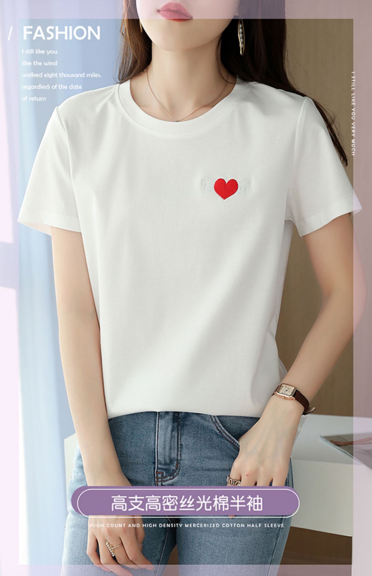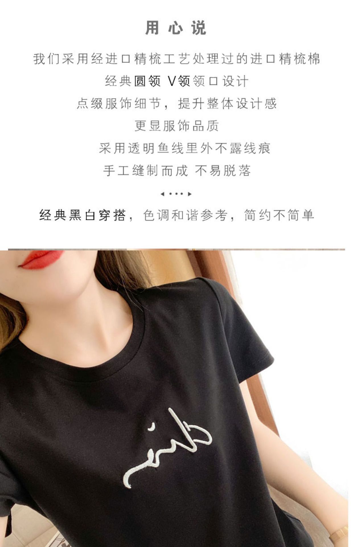 80本両面シルク綿半袖tシャツ女性夏新綿刺繍アルファベット柄丸首半袖上着
