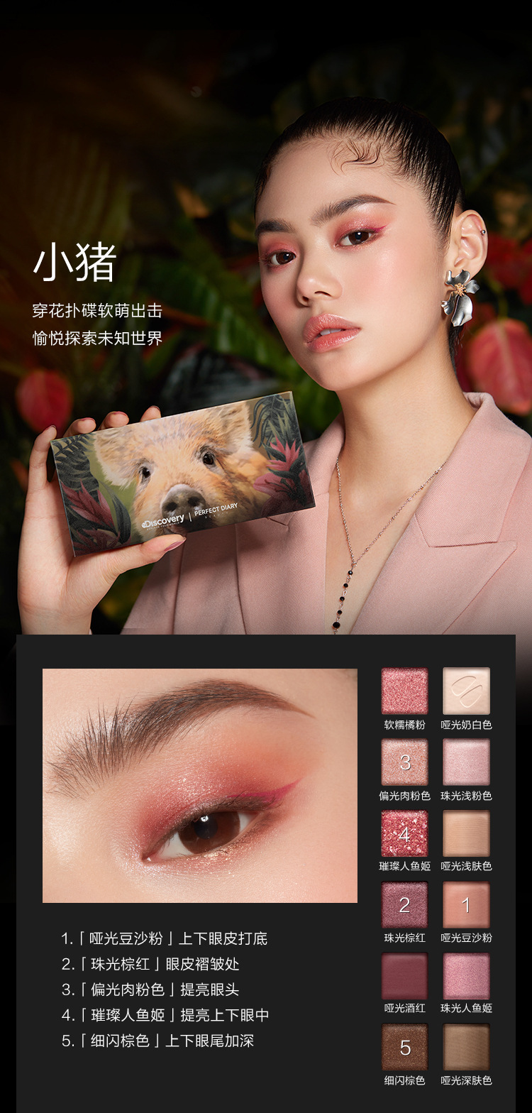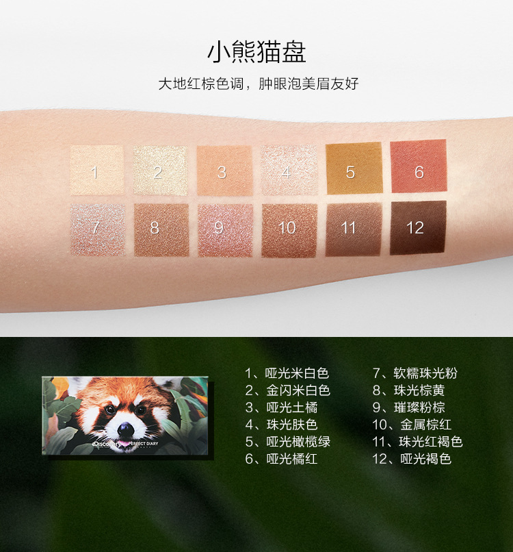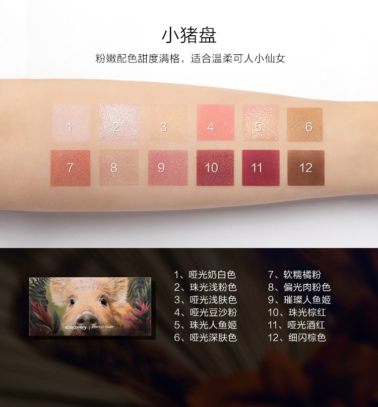 パーフェクトダイアリー 12色アニマルアイシャドウパレット【ブランド公認】赤狐、子豚、猫、雪豹の新色夏