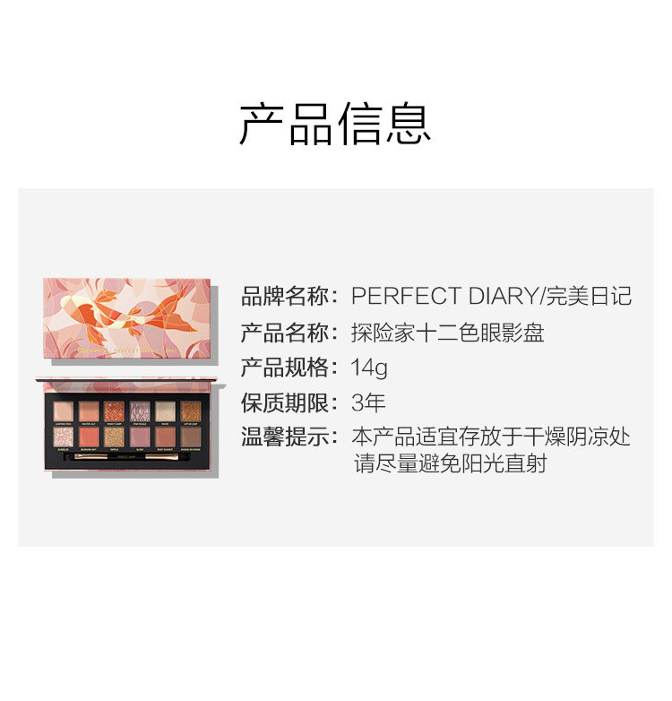 商品名 パーフェクト ダイアリー エクスプローラー 12 カラー アイシャドウ パレット