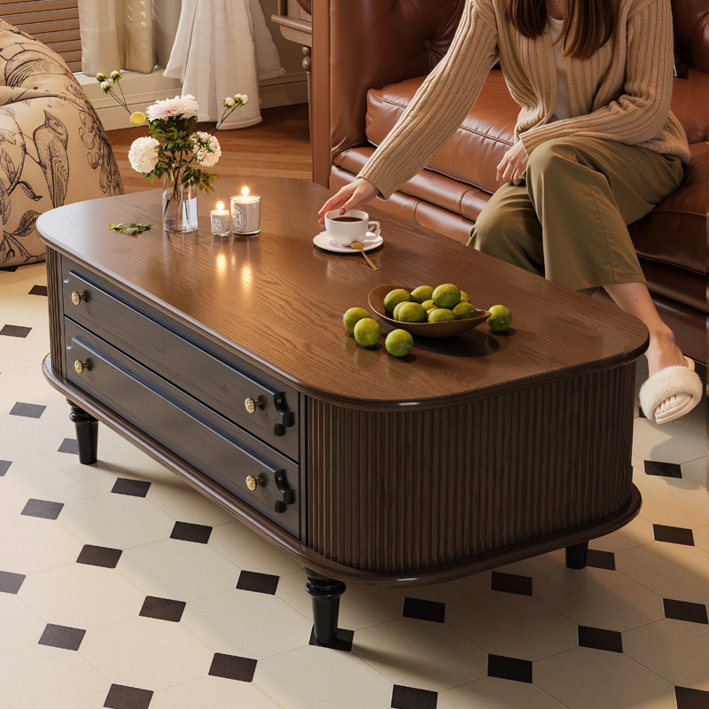 フレンチレトロ無垢材コーヒーテーブルリビングルームホーム小さなアパート2025ティーテーブルハイエンドアメリカンミッドセンチュリーソファサイドテーブル
