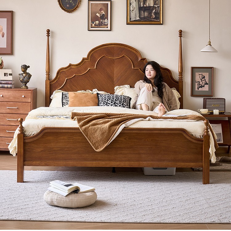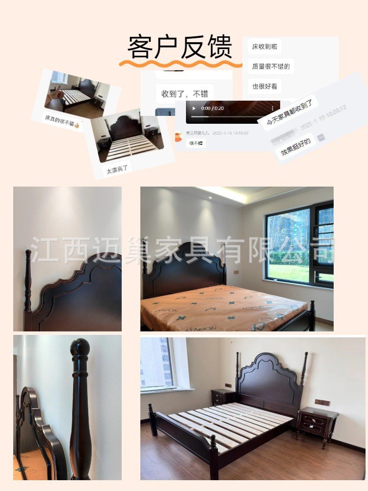 中古风美式双人床复古法式木床安娜现代简约轻奢民宿出租婚床大床