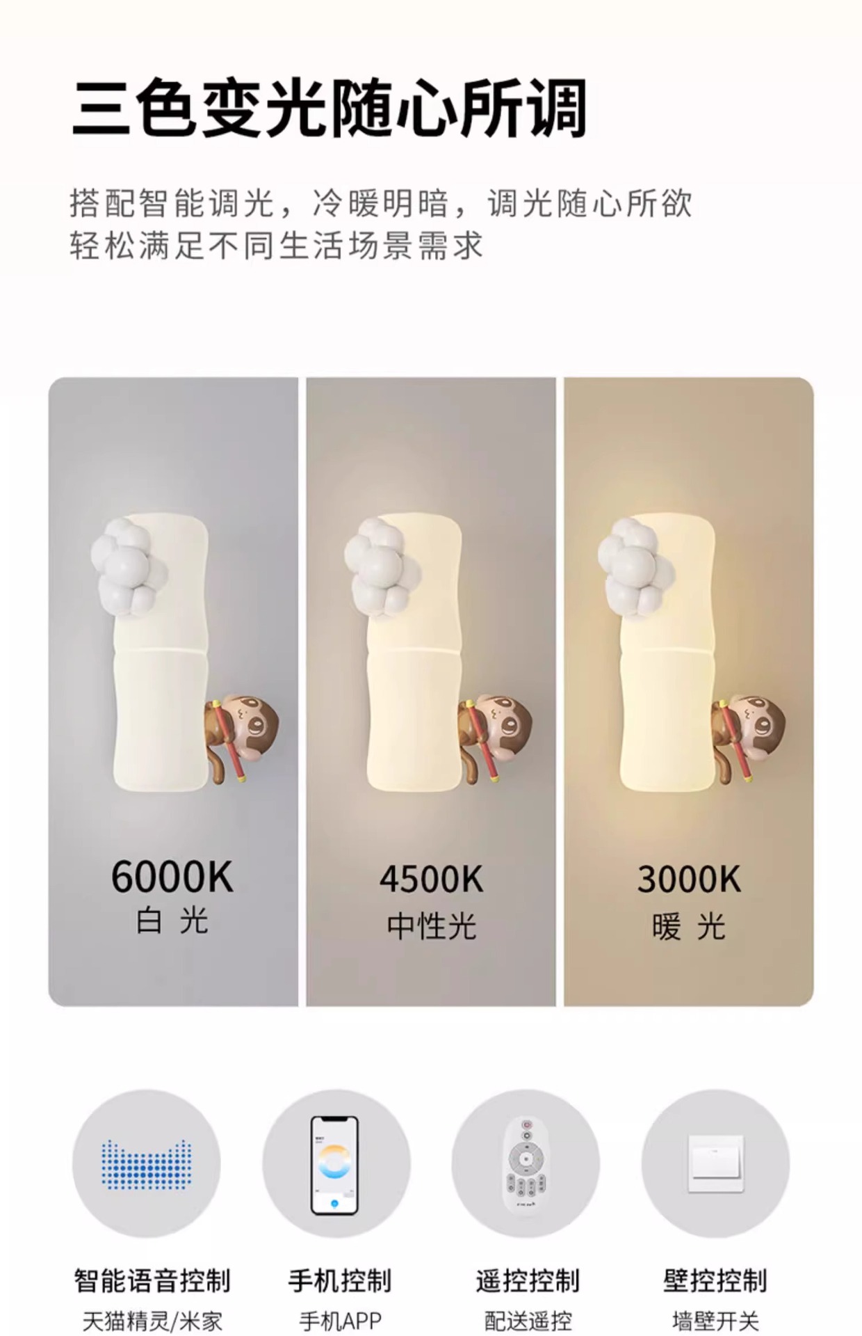 クリーム風壁灯2024新型クリエイティブアニメ動物造形部屋装飾灯全スペクトルled壁灯