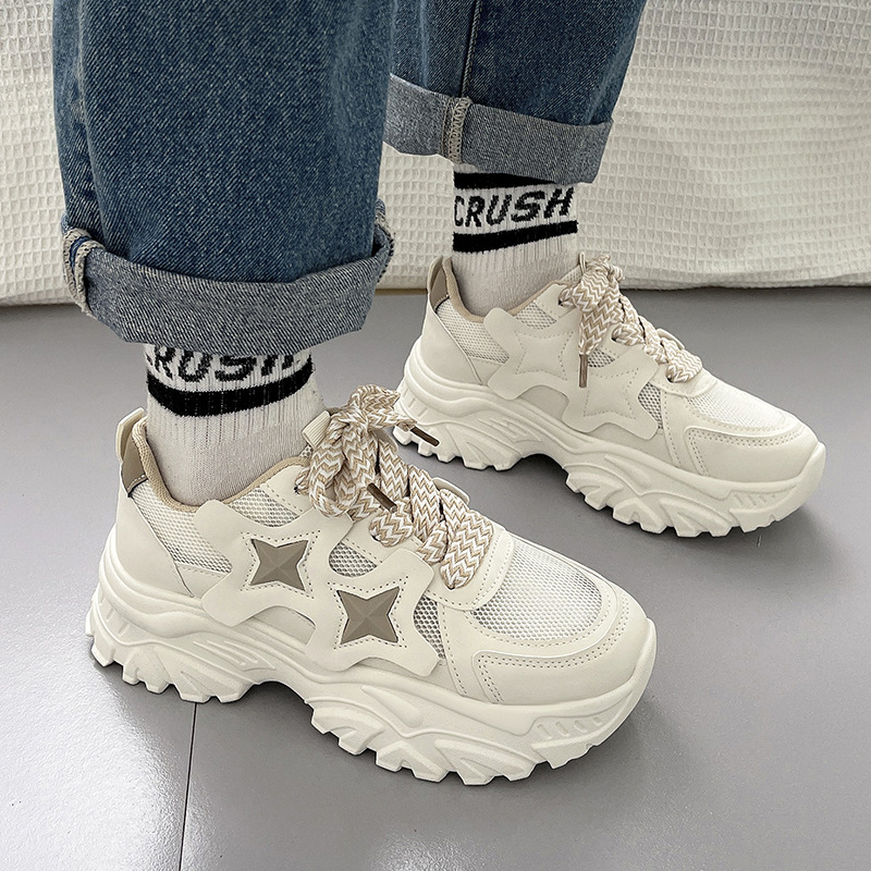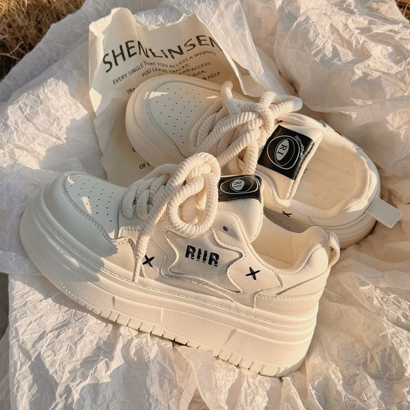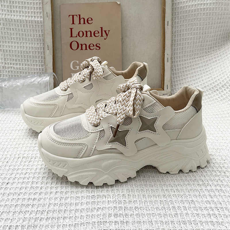 女性のためのニッチな通気性のある厚底の白い靴 2025 秋の新しいホットスタイル学生多用途スポーツシューズラウンドトゥ