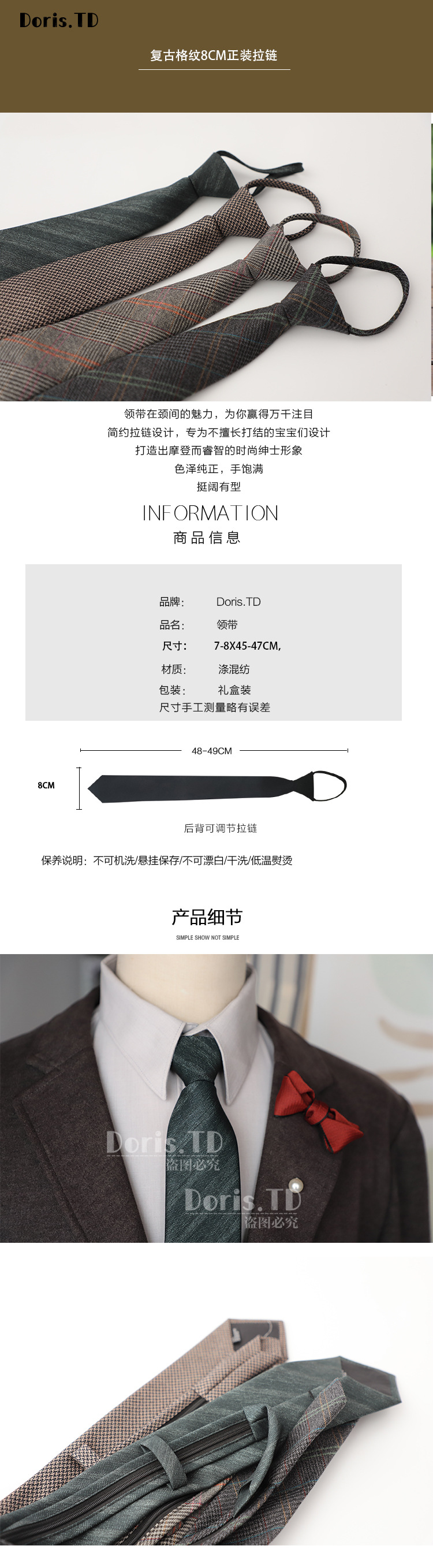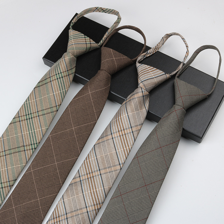 工場現物卸売り復古韓国版職業正装ファスナーネクタイ男格子縞墨緑酒赤コーヒー
