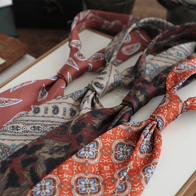 工場の現物卸売りはレトロの9cmのシルクのプリントのネクタイの男性のアメリカの街頭の風の広版のレジャーの風を直接供給します。