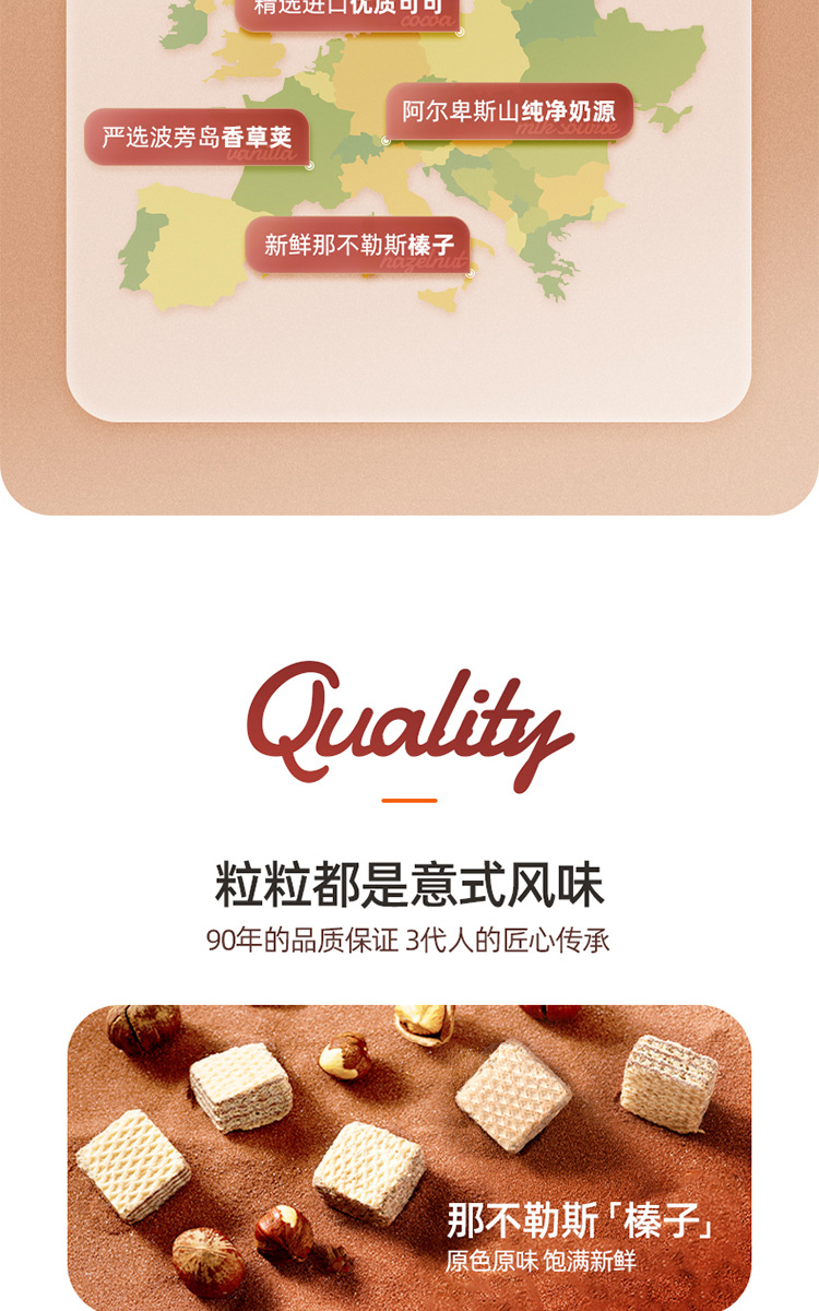 イタリア莱家威化ビスケット榛子レモンバニラココナツチーズチョコレートティラミスカプチーノ