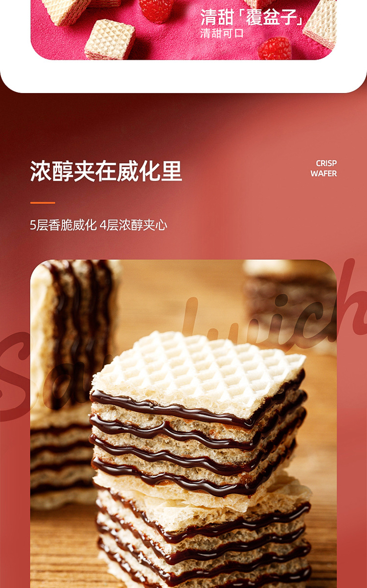 莱家チョコレート榛子サンドイッチ威化餅乾網紅間食午後茶ビスケット高級多味125g