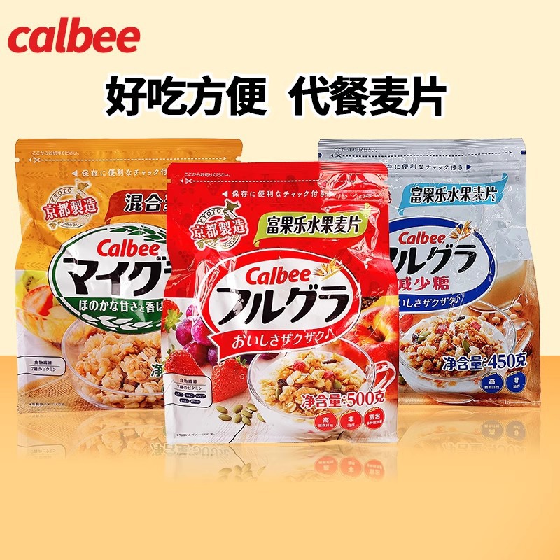 日本京都製Calbeeカルビー富果楽果物減糖混合朝食インスタントオートミール袋入り