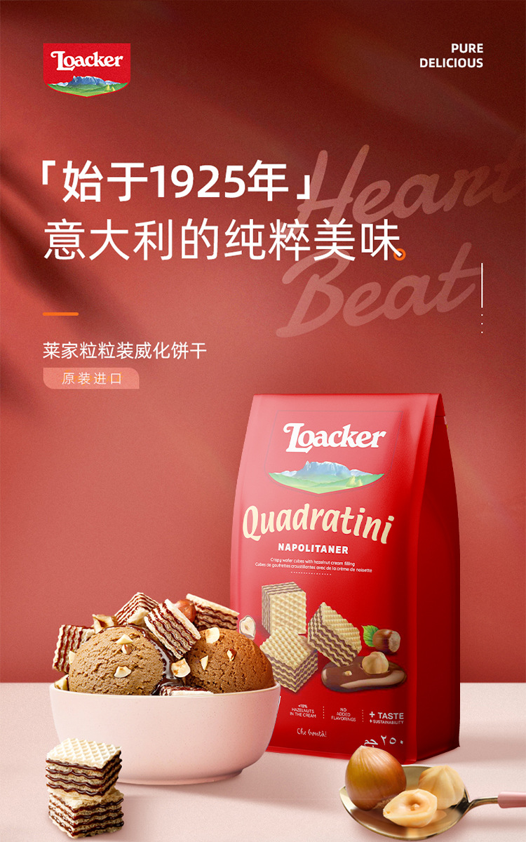 意大利进口Loacker/莱家巧克力榛子威化夹心饼干休闲解馋小零食品