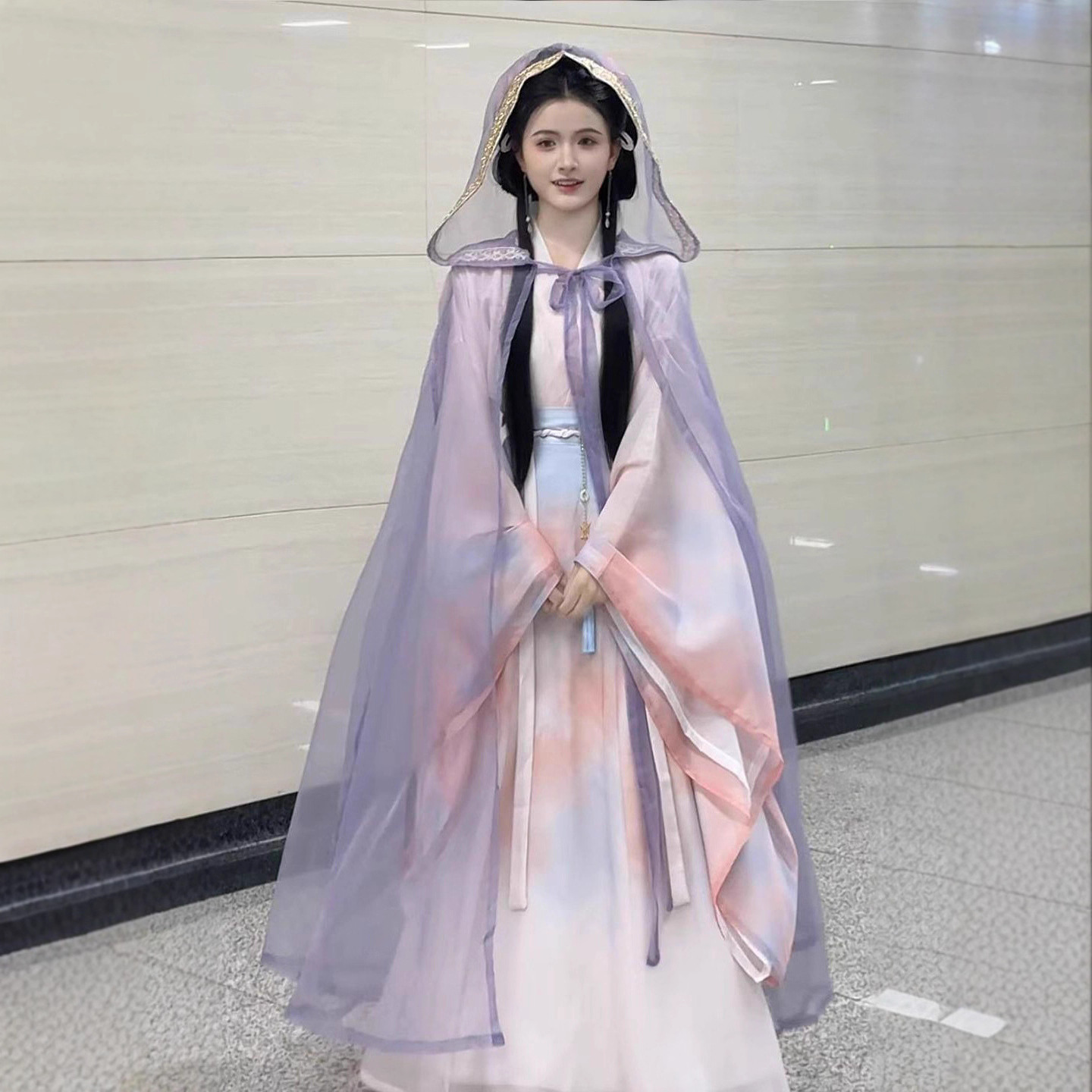 原创汉服女2025新款唐制中国风双层大袖衫齐胸裙斗篷日常超仙套装