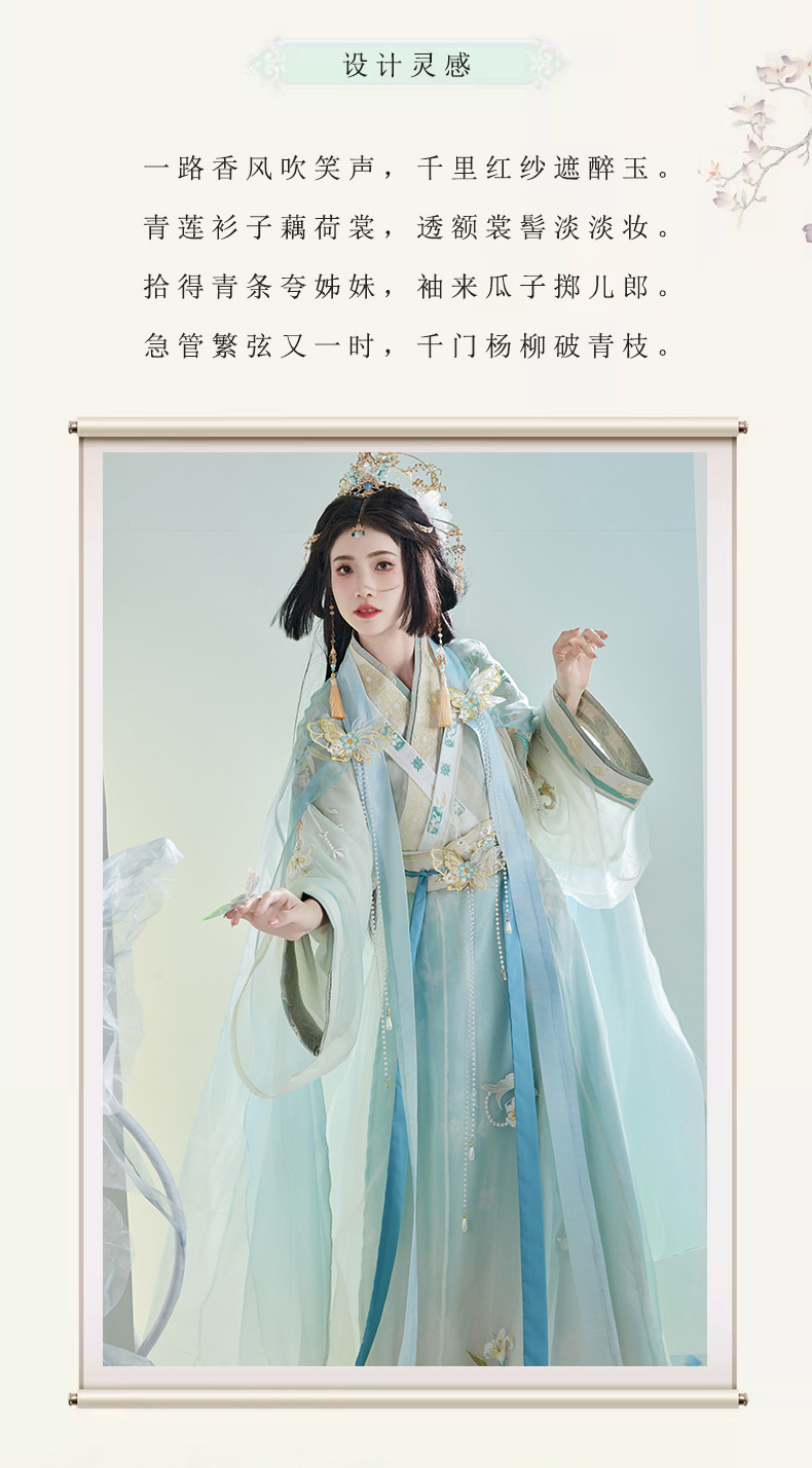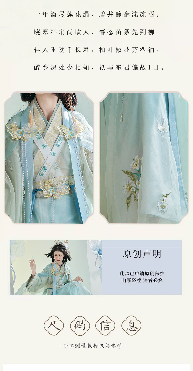 オリジナルの漢服の女性2024新作【帰辞】はウエストを合わせてスカートの魏晋風広袖のスーツの春の服の正規品を結びます。