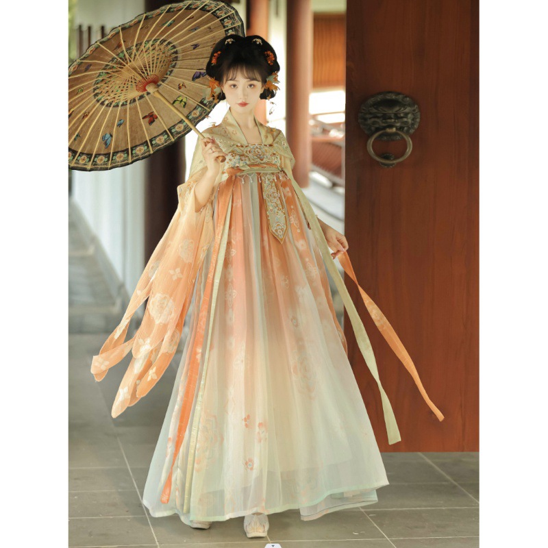 オリジナルの漢服の女性のホーテのスカートの唐製の胸の1枚のメンズのスカートの刺繍の大きい袖のシャツの中国風の春の夏のスーツ