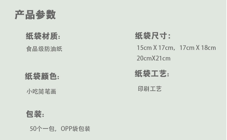 シングル開口サンドイッチ包装袋使い捨て軽食フィルム防油紙袋手掴み餅包装袋
