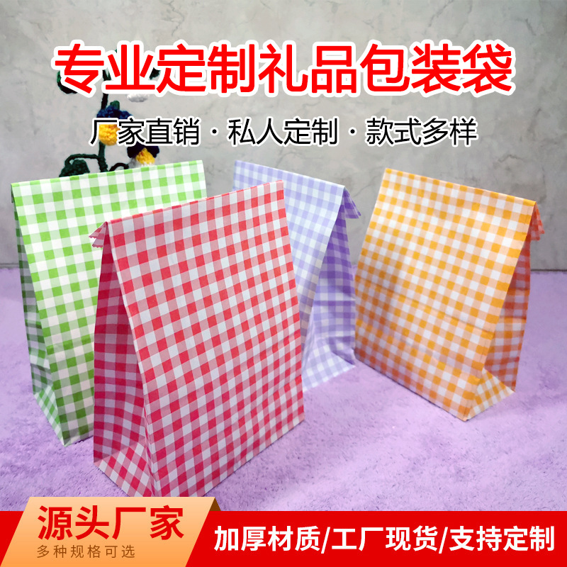 Ins韓風カラー格子厚手喜糖袋牛革紙袋ギフト包装袋写真撮影道具整理袋