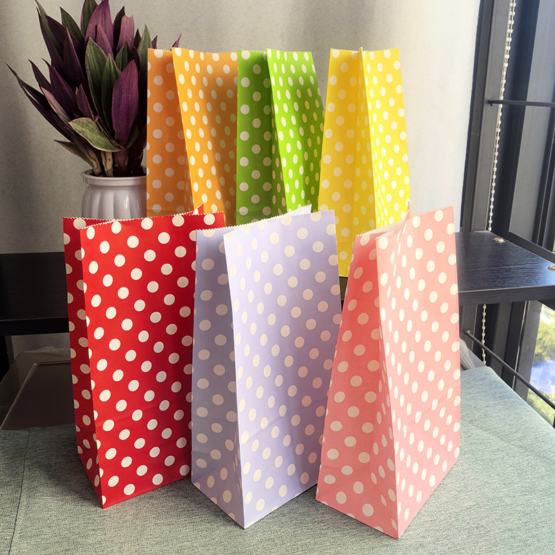 Ins マカロンドットクラフト紙収納袋寮デスクトップ収納袋幼稚園ギフトバッグ小紅書