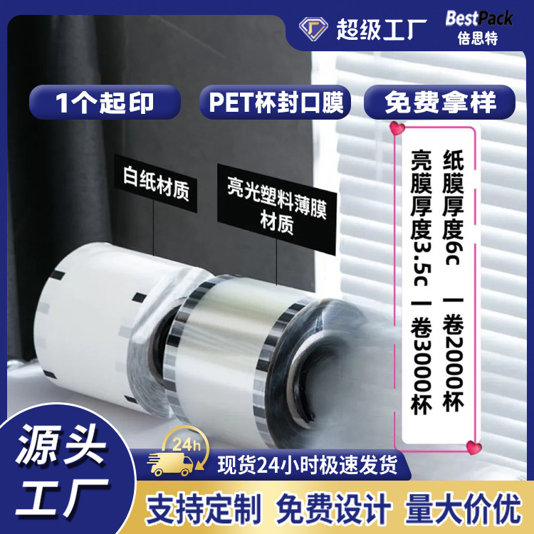 909598口径封PET杯封口膜纸膜亮膜一次性封杯膜柠檬茶林里定制