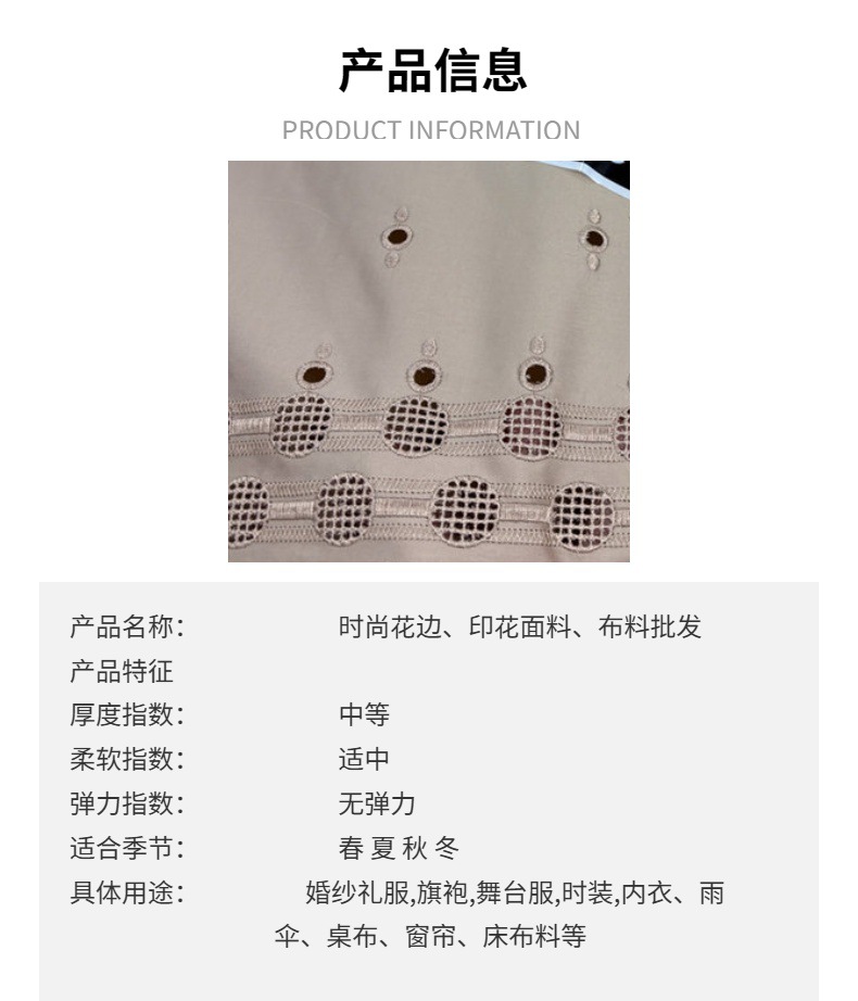 1. 规格:每片为5码,宽度为:122-135厘米,每片长度规格为5码,不裁剪销售。