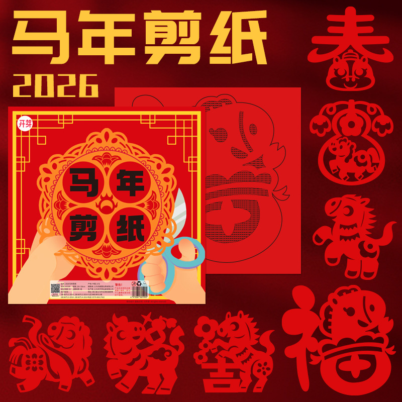 2026年馬年子供向け春節切り紙DIY手作り材料新年民俗伝統窓飾り中国風切り紙