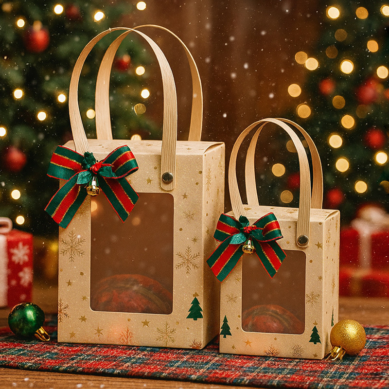 圣诞节手提开窗礼盒平安夜苹果糖果包装盒精美创意礼物盒现货