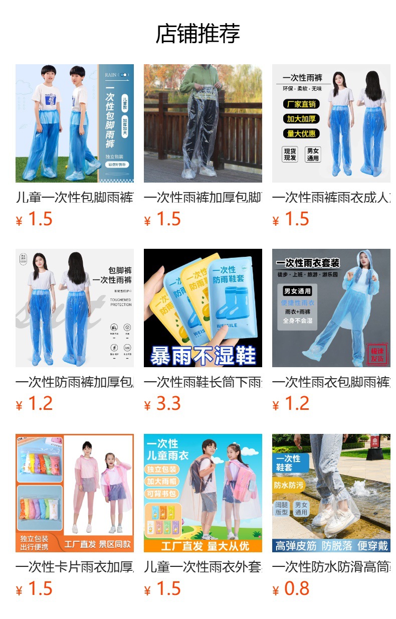 使い捨てレインパンツは足を厚く包んだレインパンツは足を長くしています。