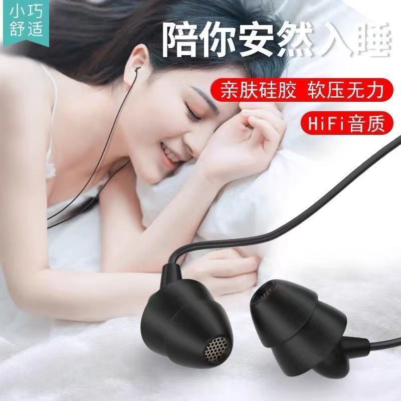 睡眠耳机HiFi软硅胶侧睡隔音不压耳入耳式手机耳机有线带麦