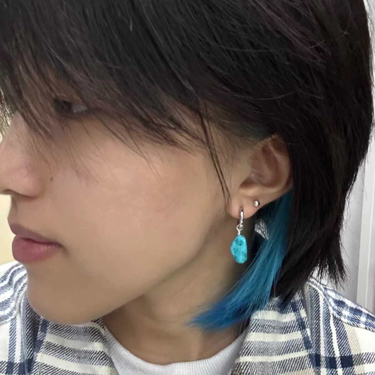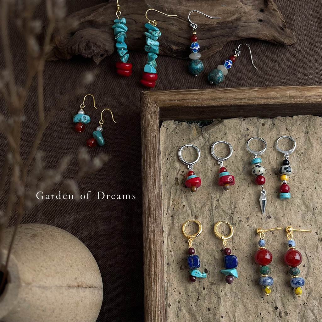 ‌荒野图腾藏式耳环绿松石石头耳坠高原觉醒风不规则男女款‌