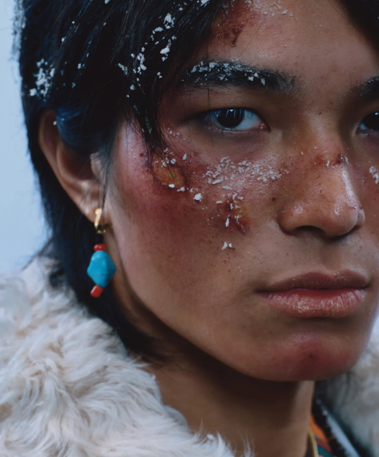 丁真同タイプのピアスのイヤリングは緑松石のチベット式のイヤリングの民族風チベット族のアクセサリーのイヤリングに似ています。