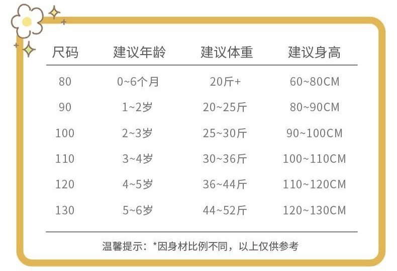 中小童(3 ~ 8歳、100 ~ 140cm)