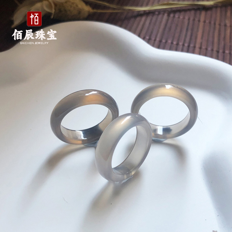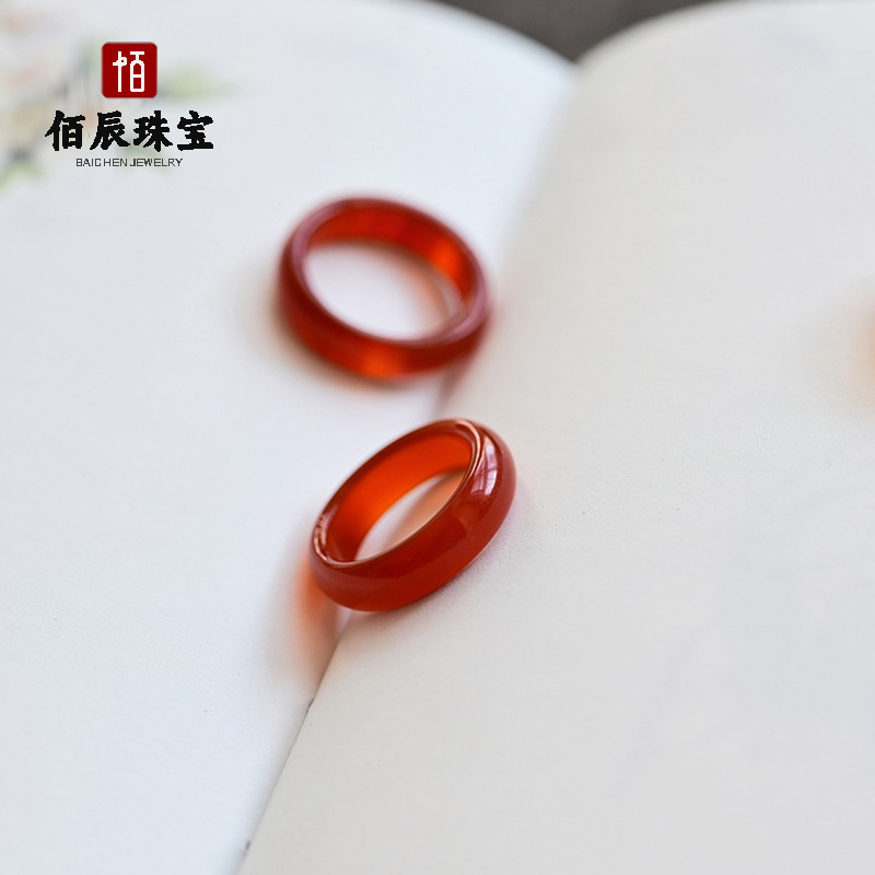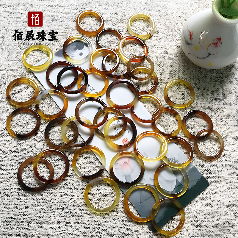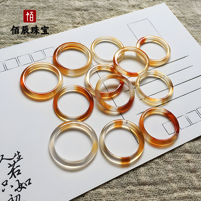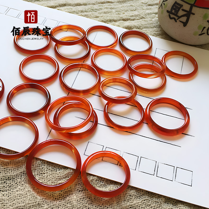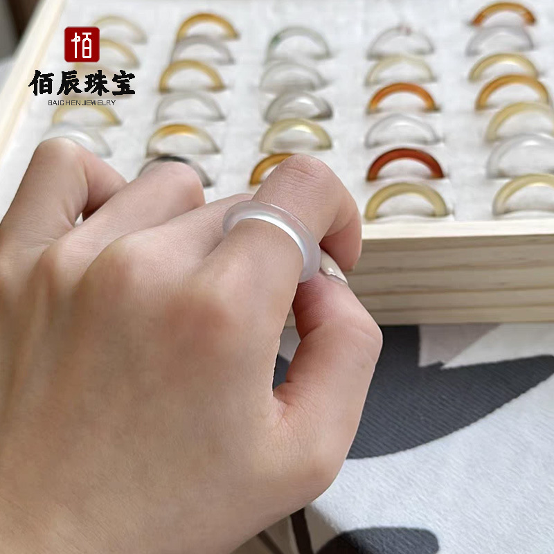 天然马料玛瑙玉髓戒指新中式国风素圈一口糖高冰透玉髓戒圈批发