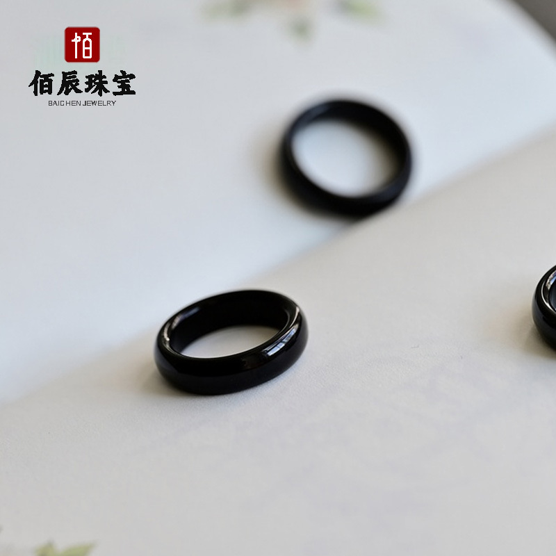 冰种白玉髓玛瑙细戒指 男女款玛瑙玉石对戒3MM情侣戒指指环尾戒