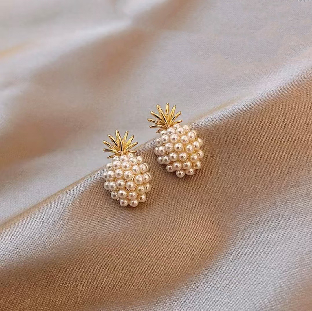 優雅な気質のパイナップルの高級感の真珠のピアスの女性のファッションの百合の小さい大衆のイヤリングのシンプルで甘くて精巧な耳飾り
