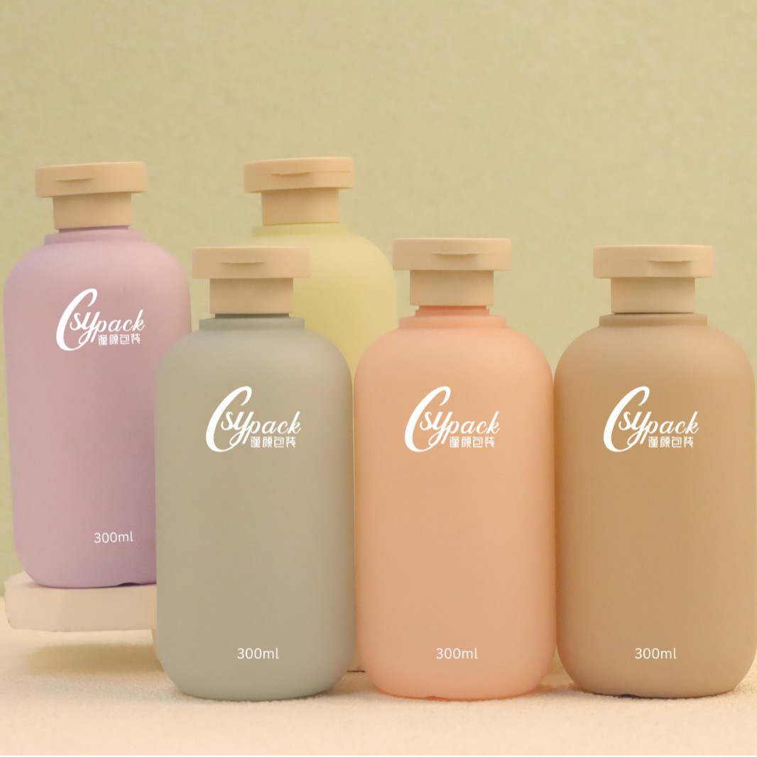 グレーグリーンピンクバイオレットブルーHDPEパイル素材300mlボトルバッグ组み立てポンプヘッドフリップ