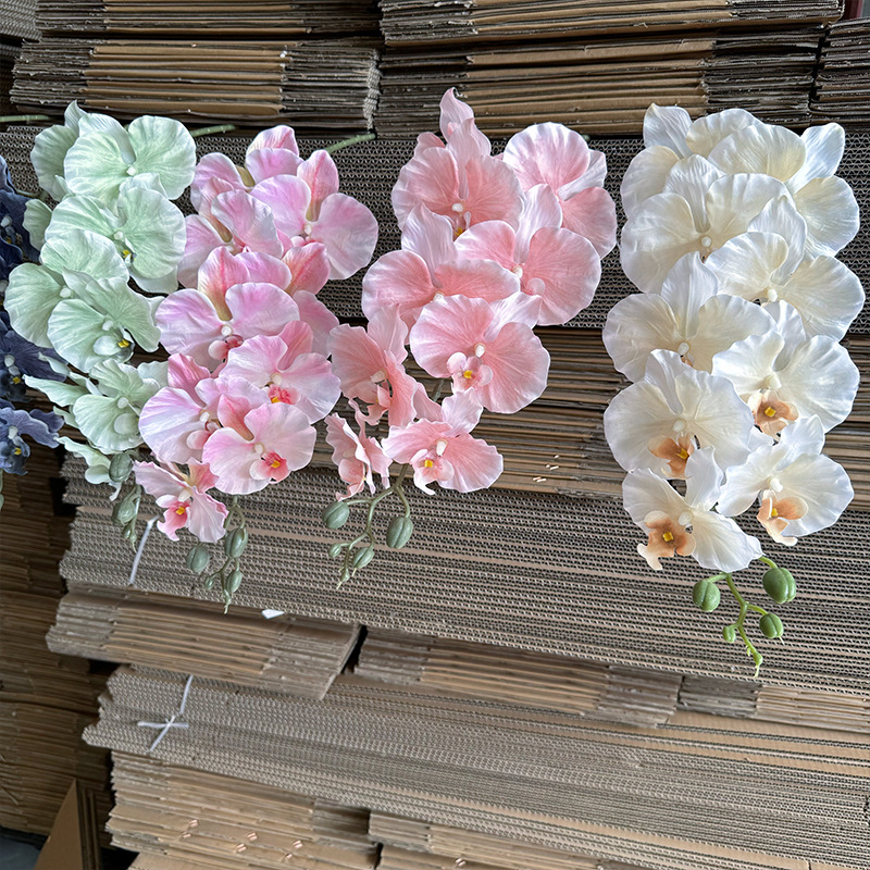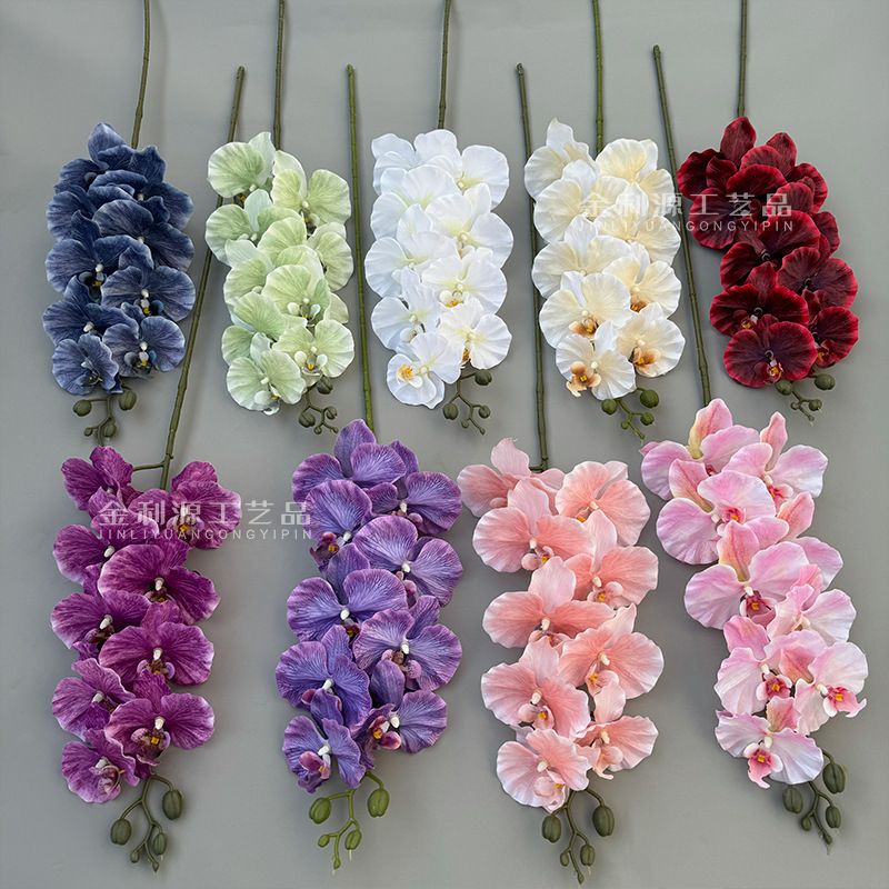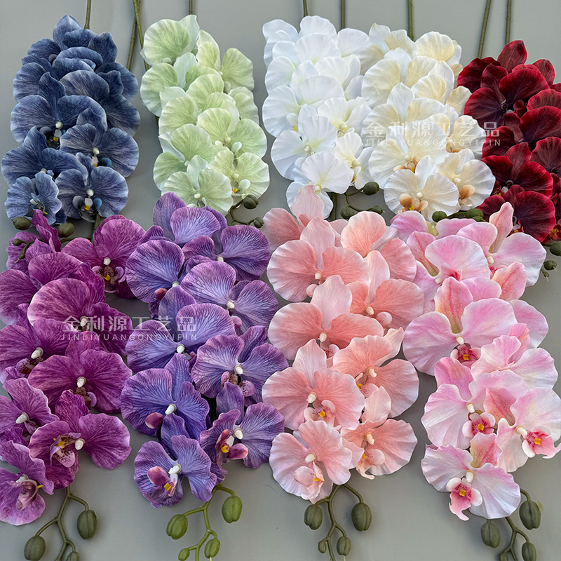 9頭の新型高級絹布の胡蝶蘭の質感のあるプリントの胡蝶蘭の偽花の対外貿易の越境花の卸売り