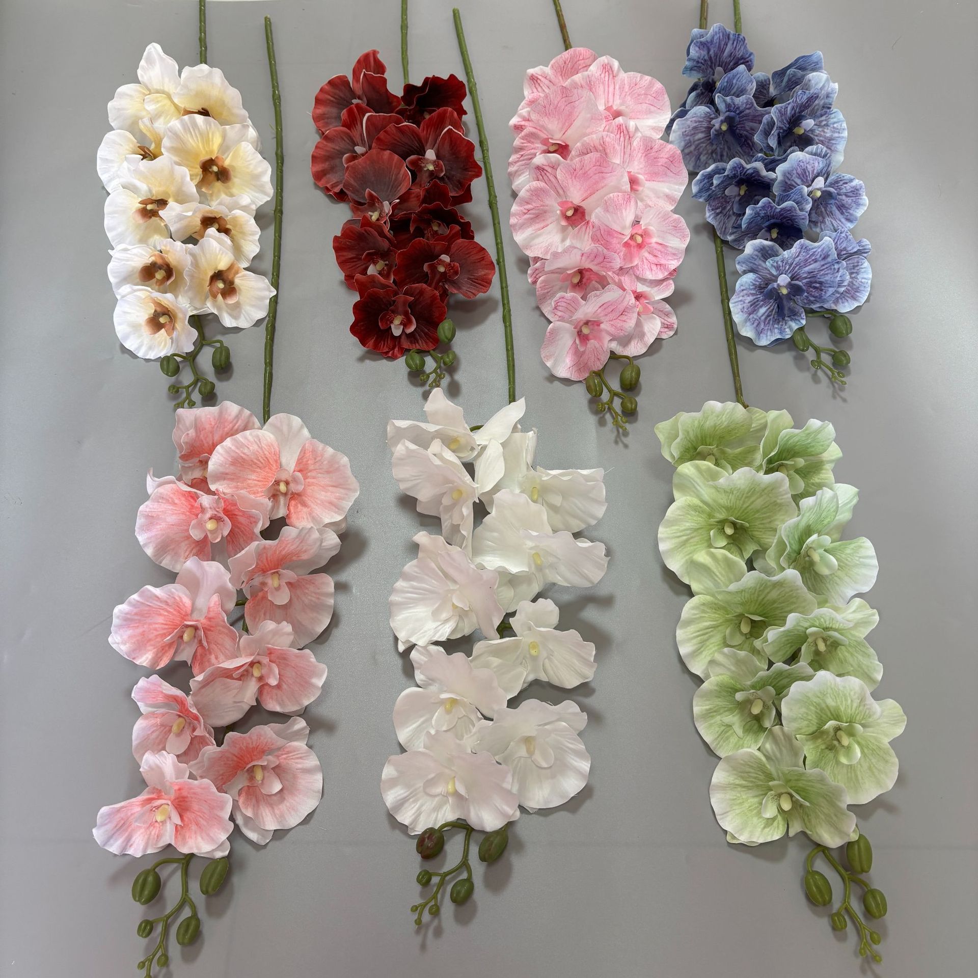 9頭の手触りの胡蝶蘭3dプリントの高さはゴムの布の胡蝶蘭の対外貿易の高級な造花の人工花をシミュレーションしたことがあります。