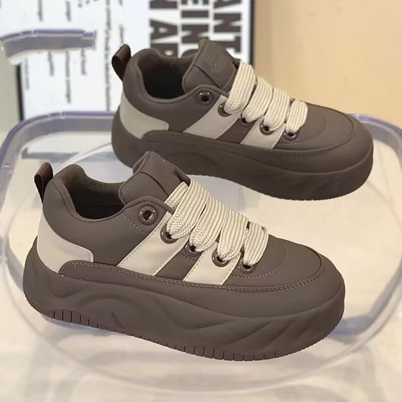 2025春秋季新款复古丑萌面包鞋女厚底增高透气松糕板鞋休闲运动鞋