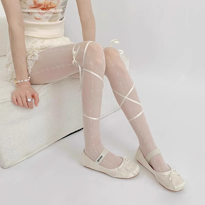 洛丽塔奶白色丝袜百搭小腿绑带纯欲连裤袜长袜甜美可爱ins风时尚
