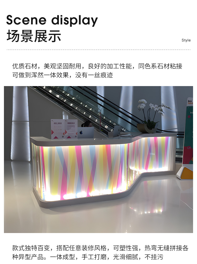 アメリカデュポン透光石受付台ホテルロビー発光フロントアクリル人造石バーカウンター加工
