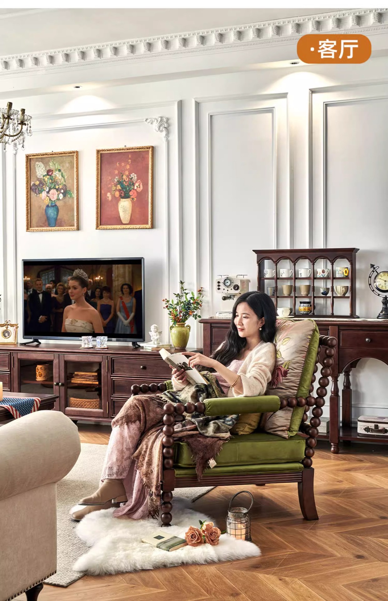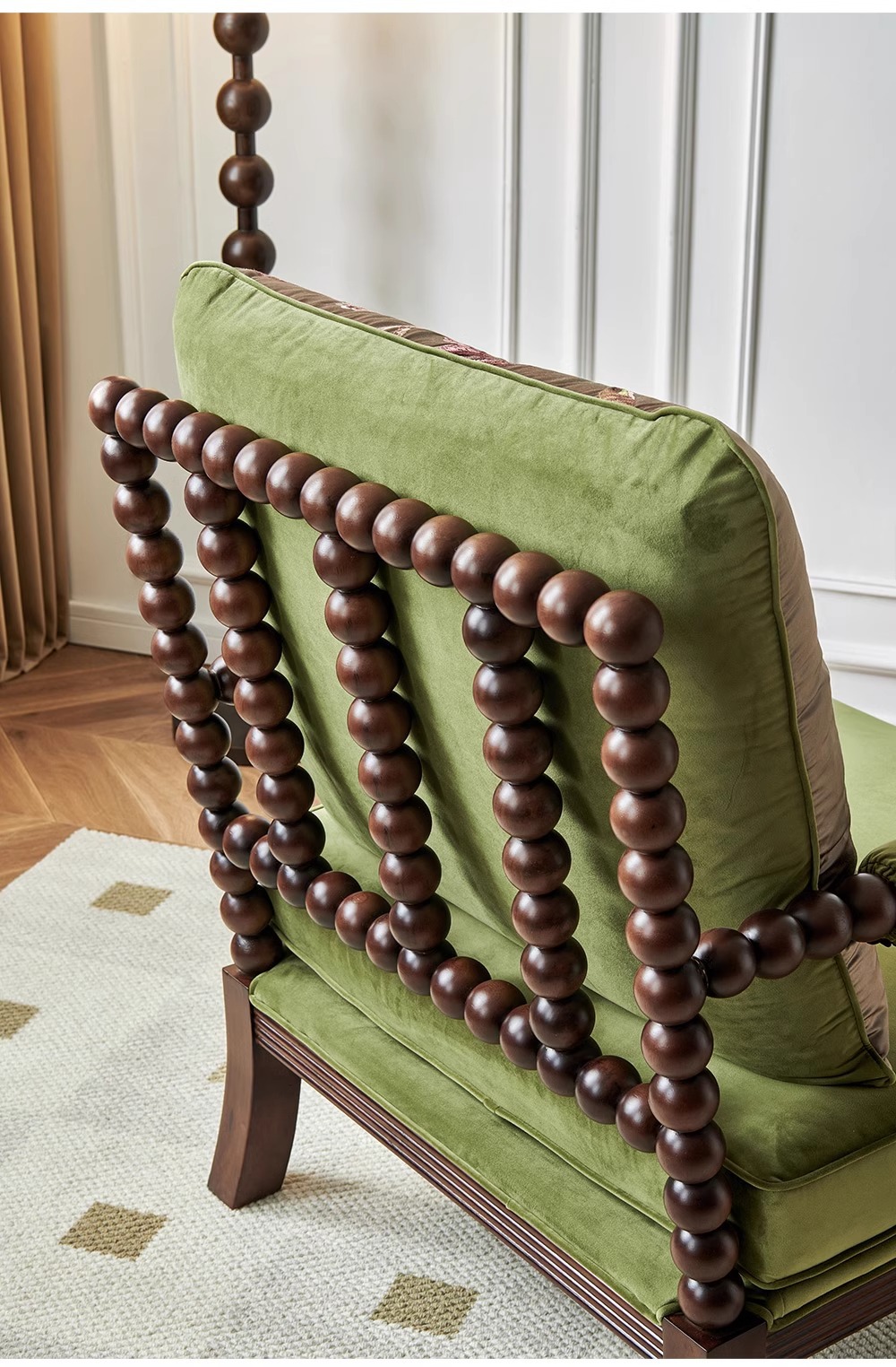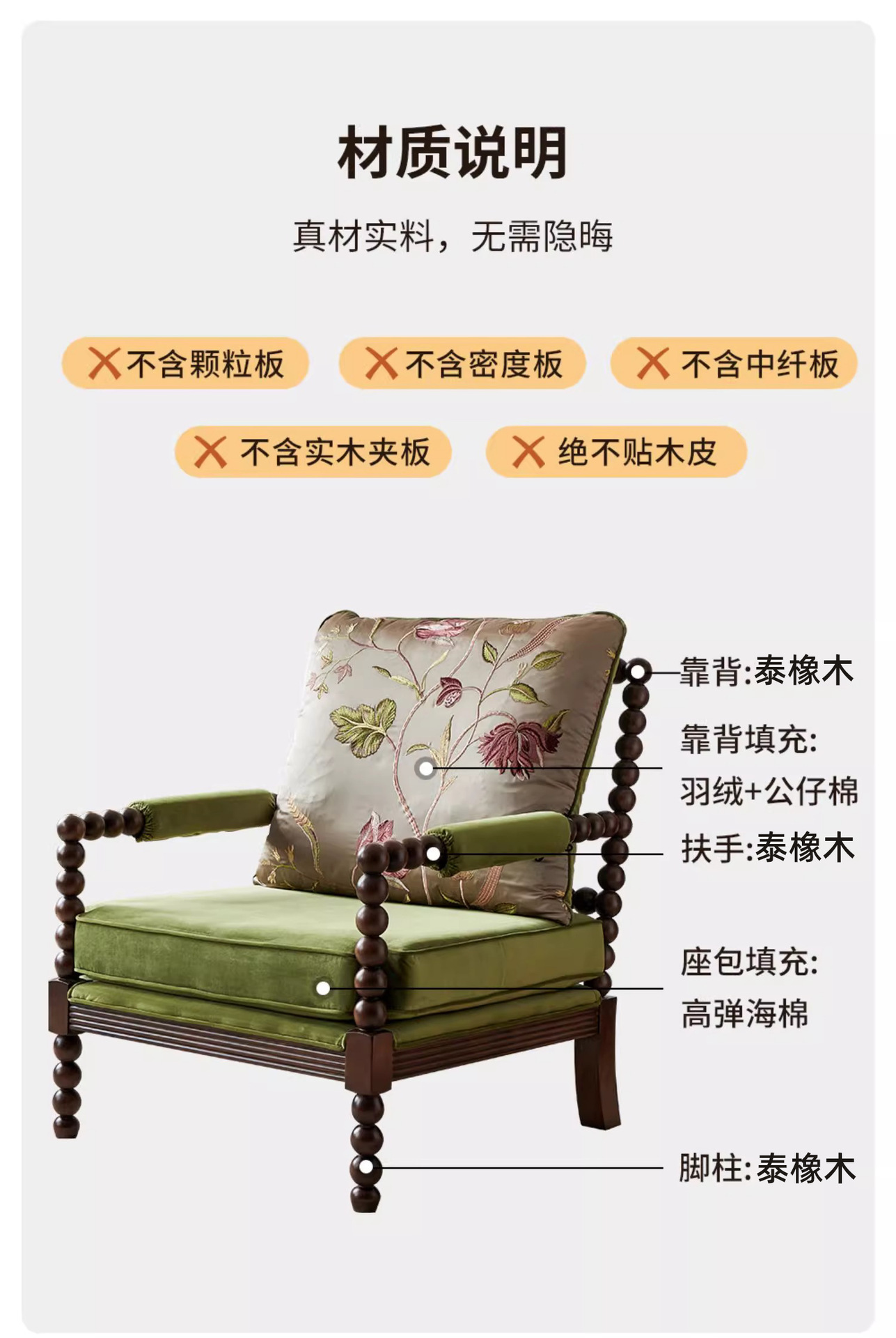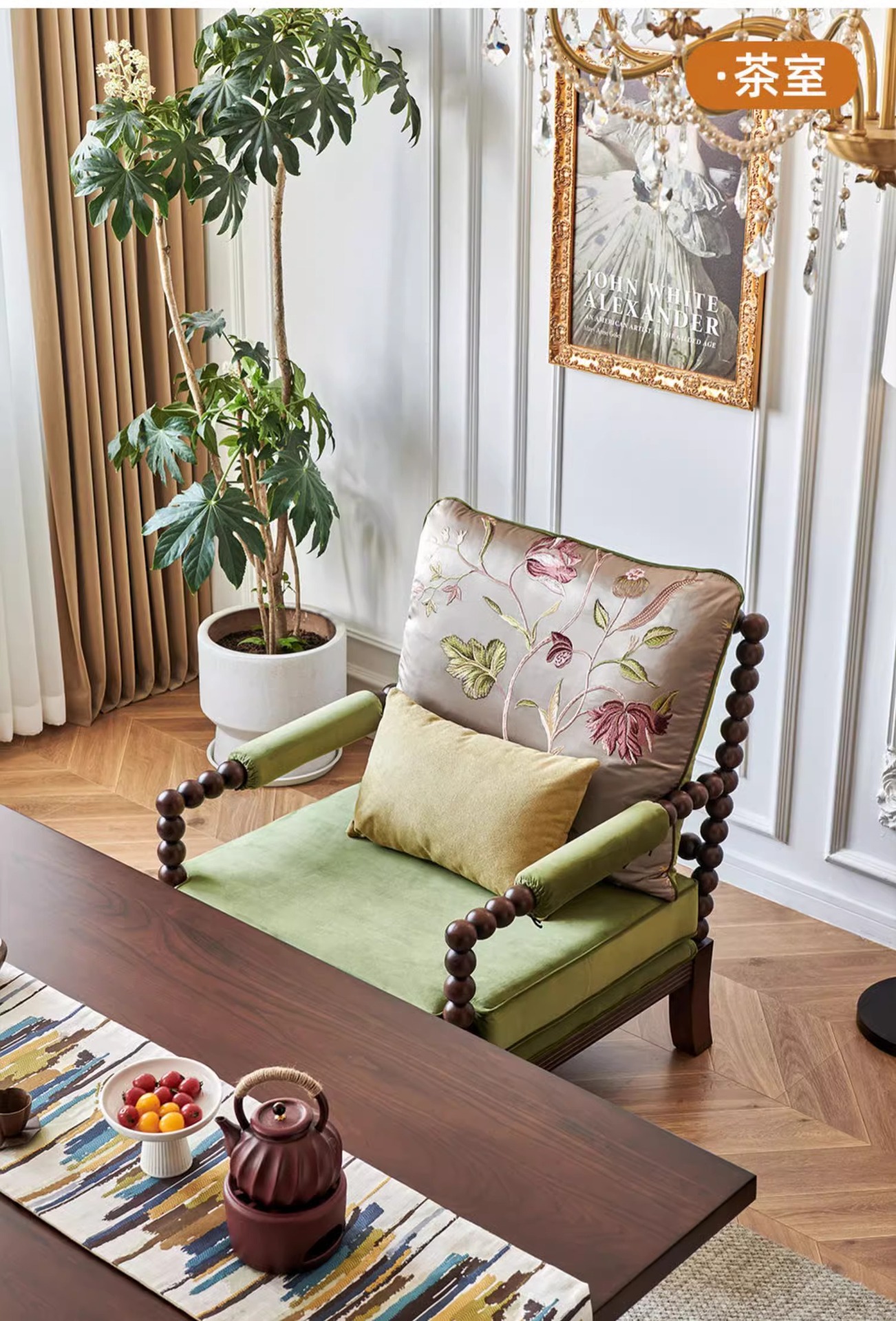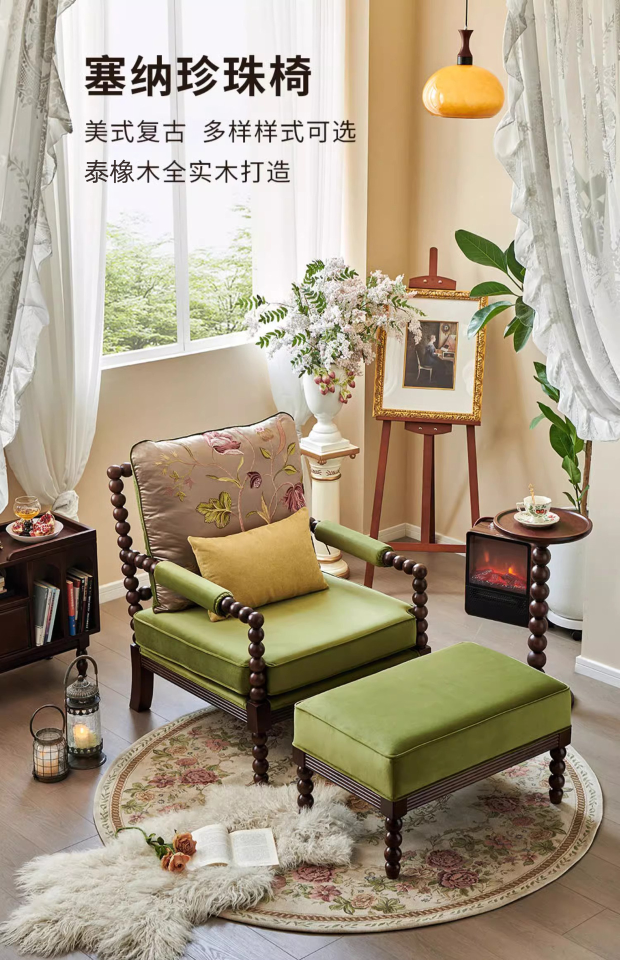 珍珠椅美式复古实木布艺单人沙发法式中古风客厅休闲椅子繁花扶手