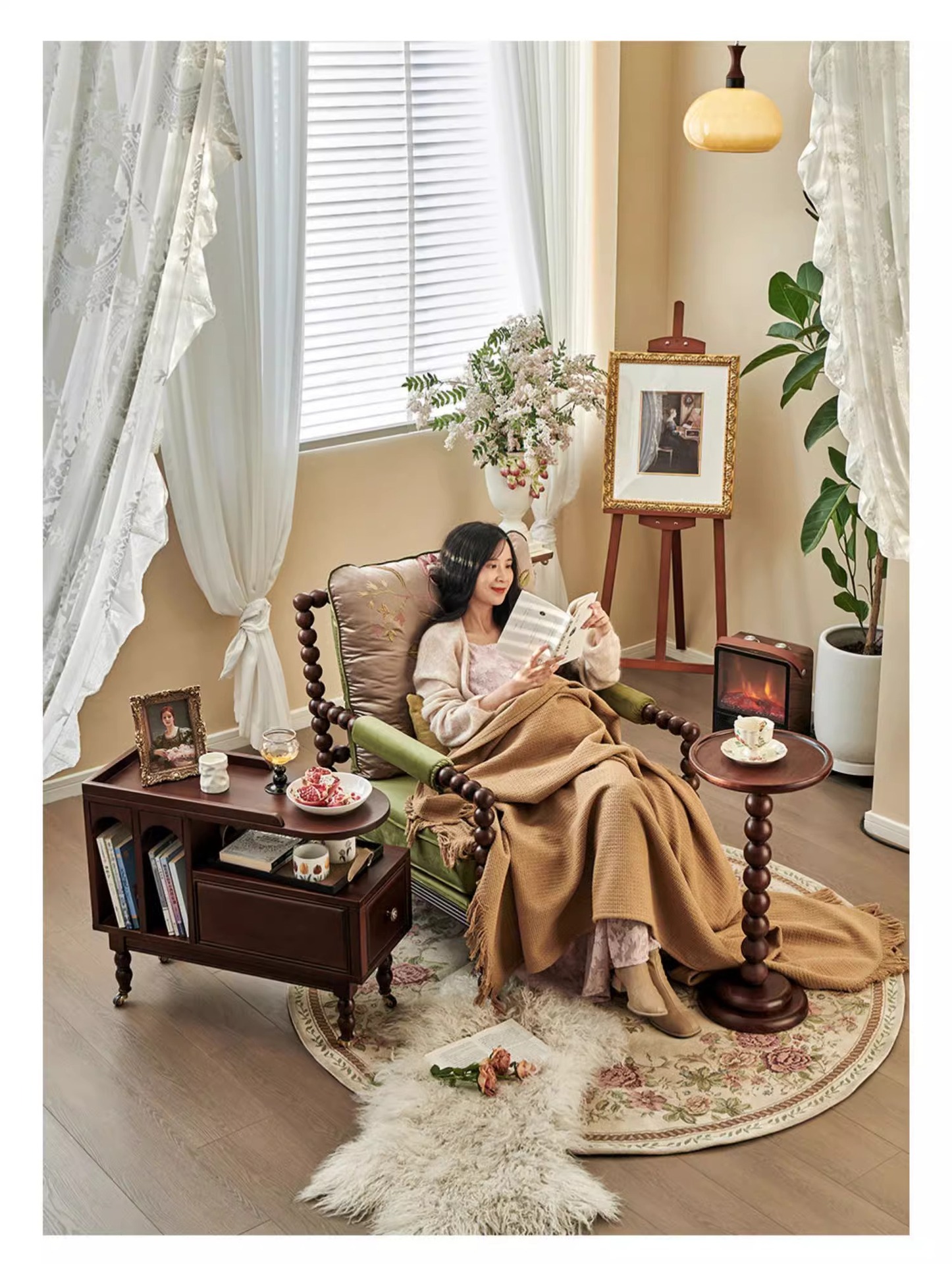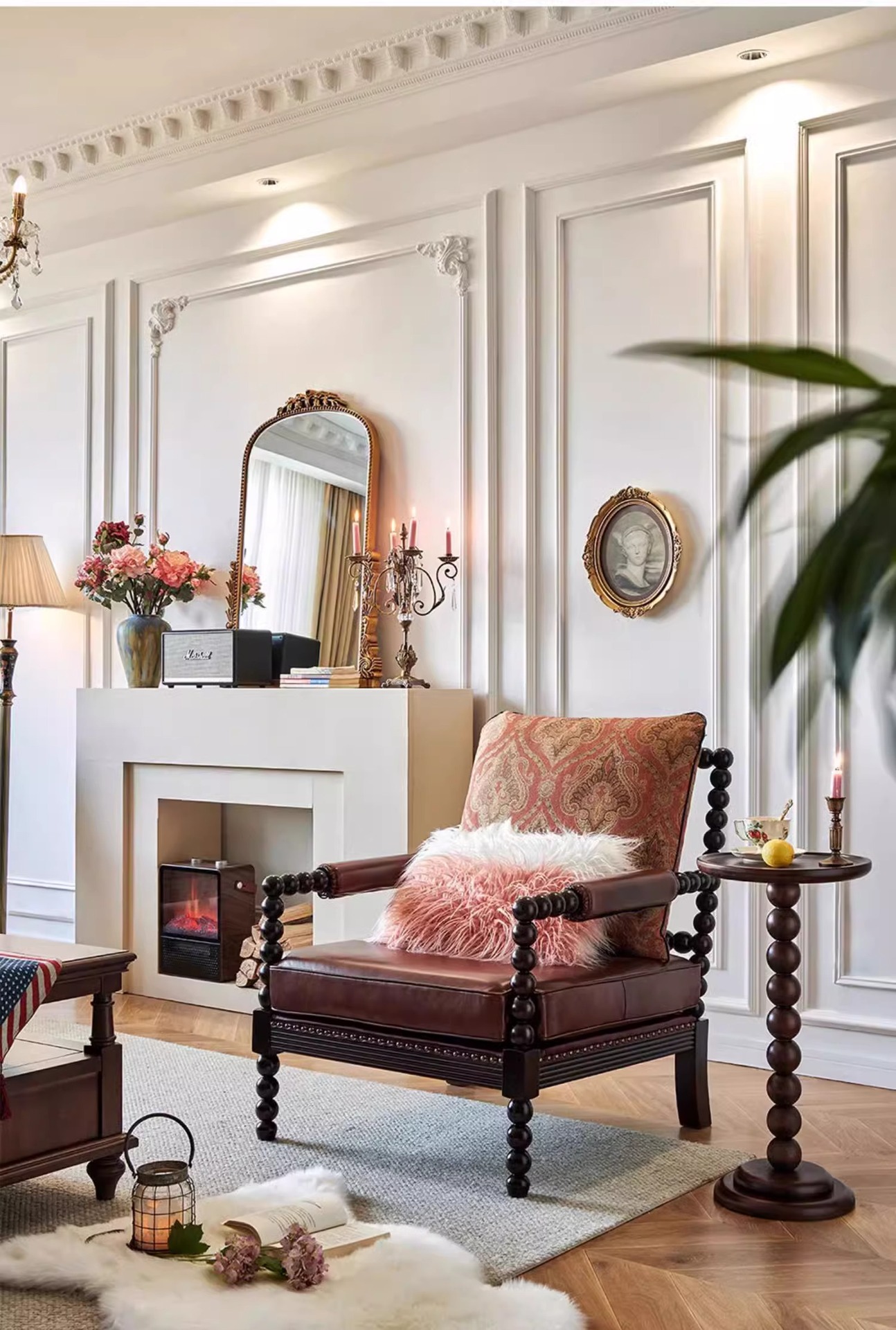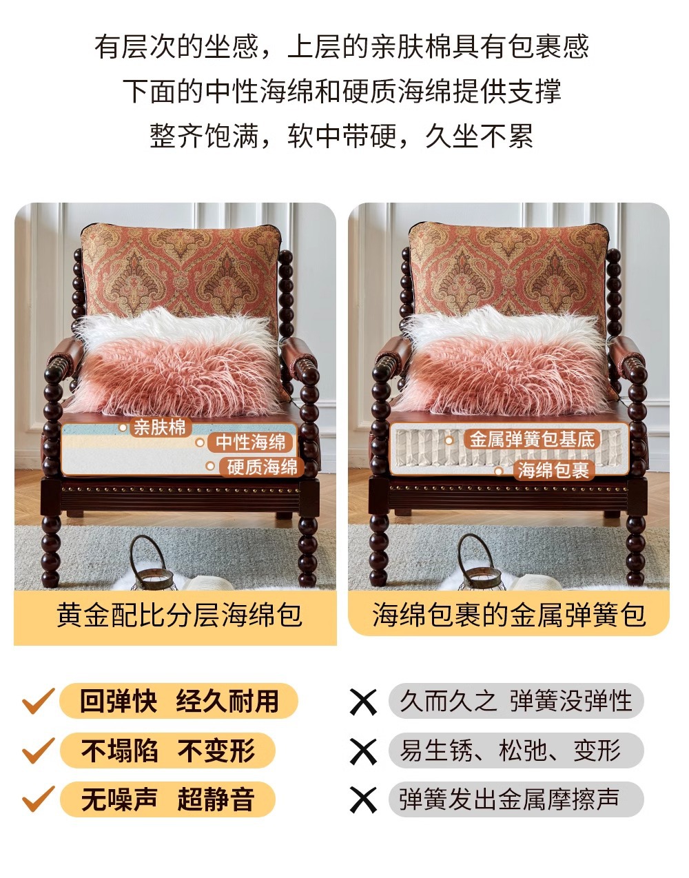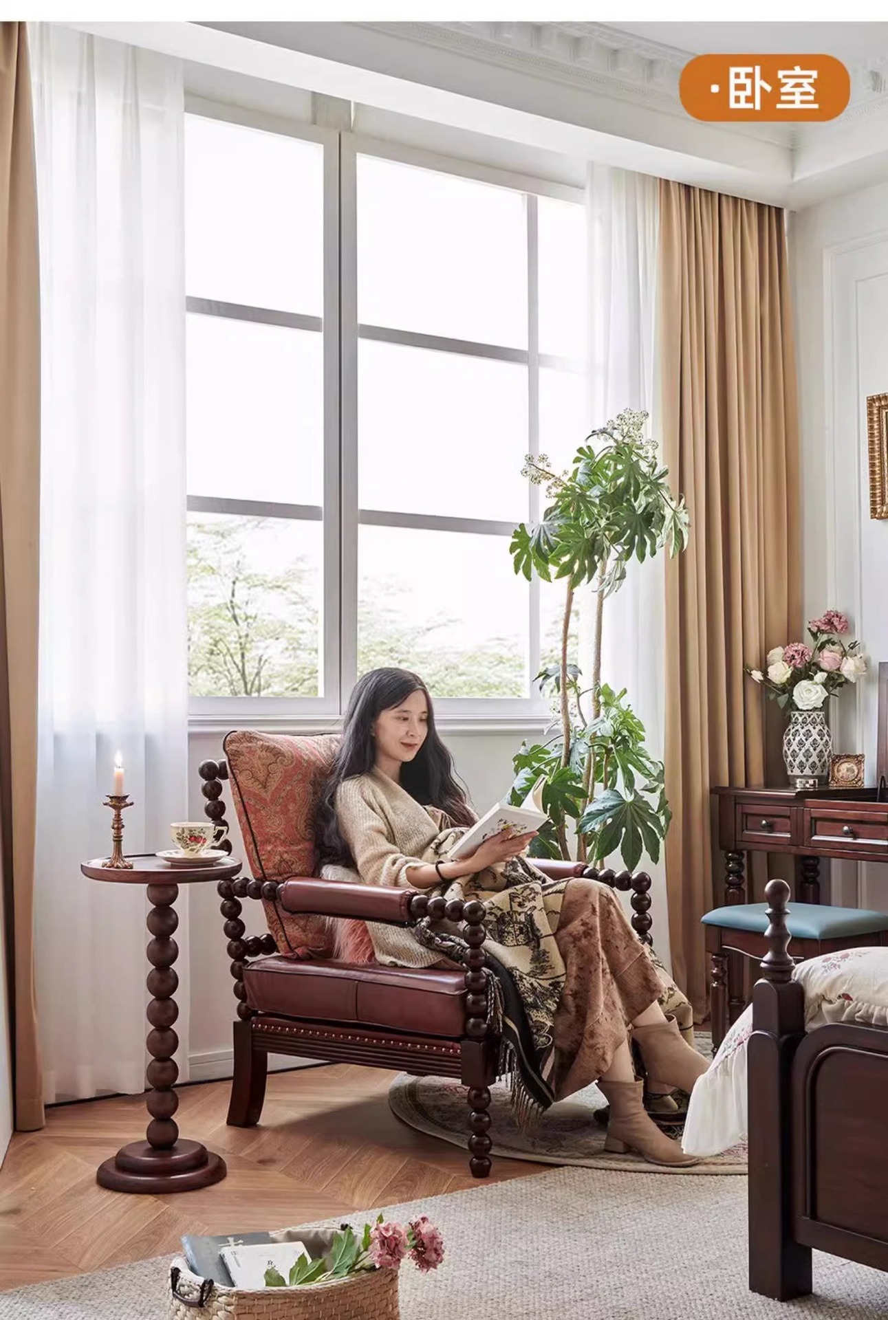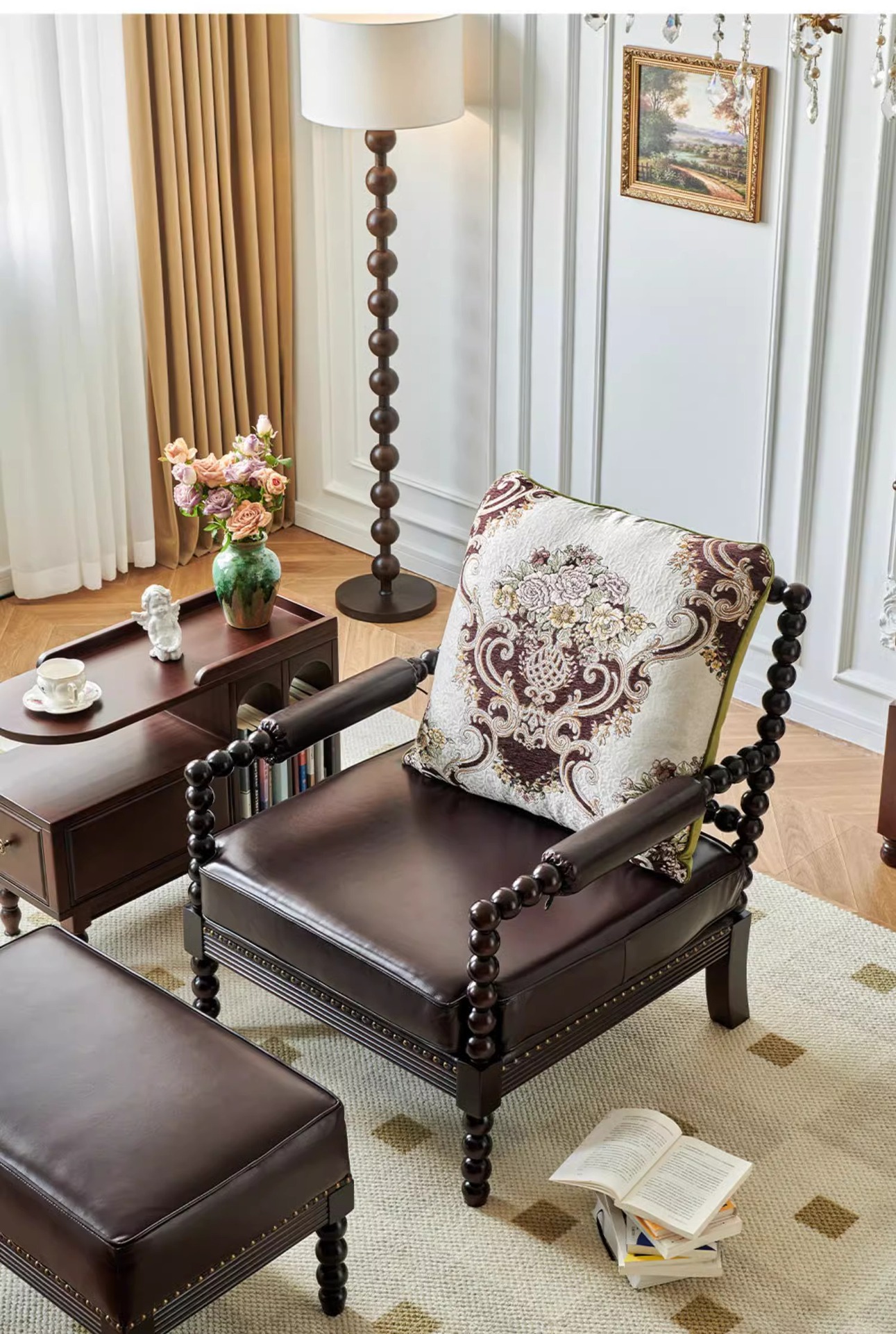 珍珠椅美式复古实木布艺单人沙发法式中古风客厅休闲椅子繁花扶手