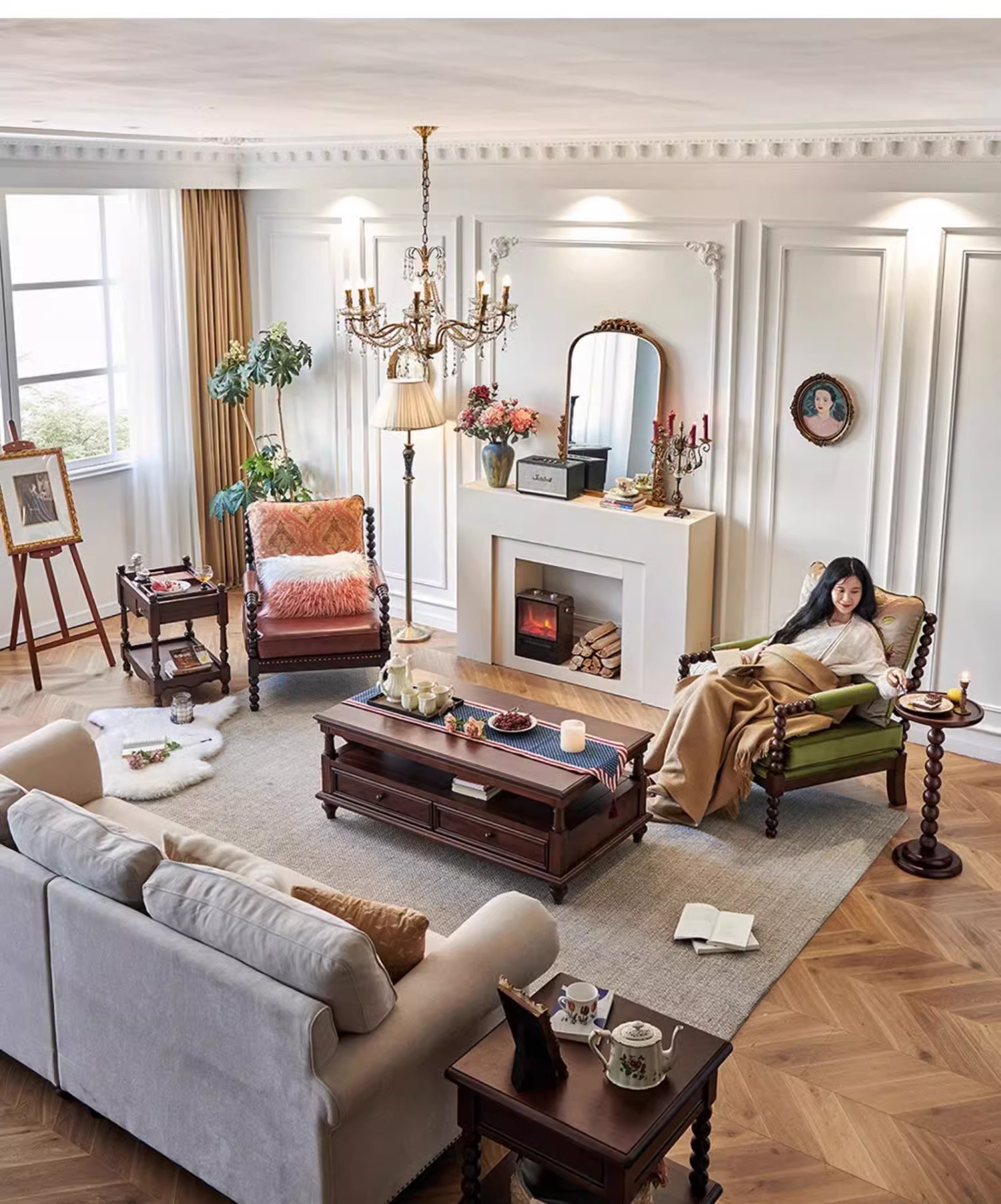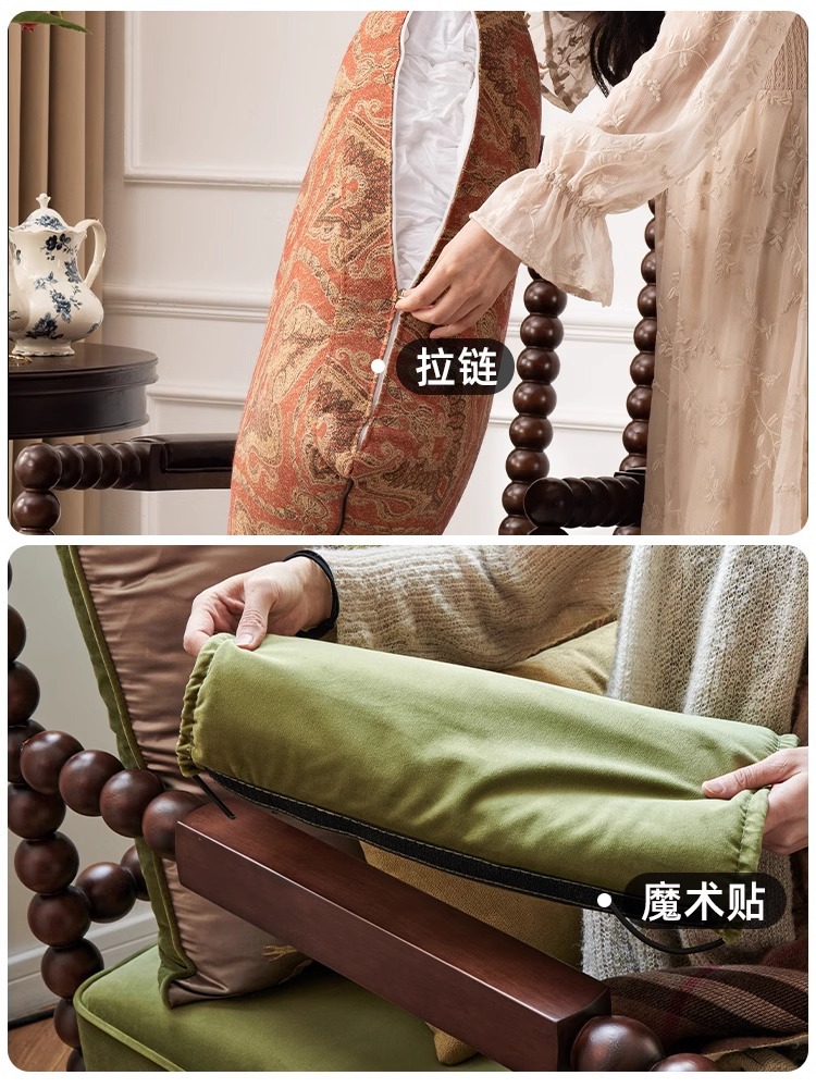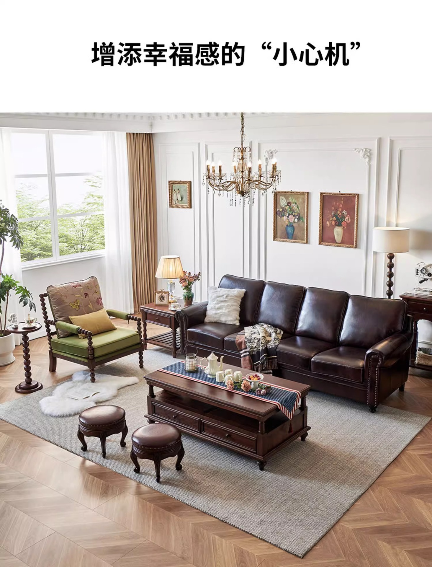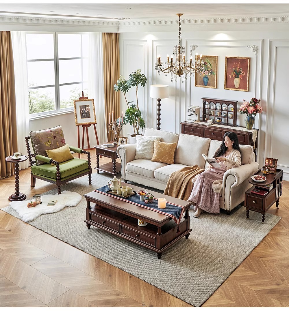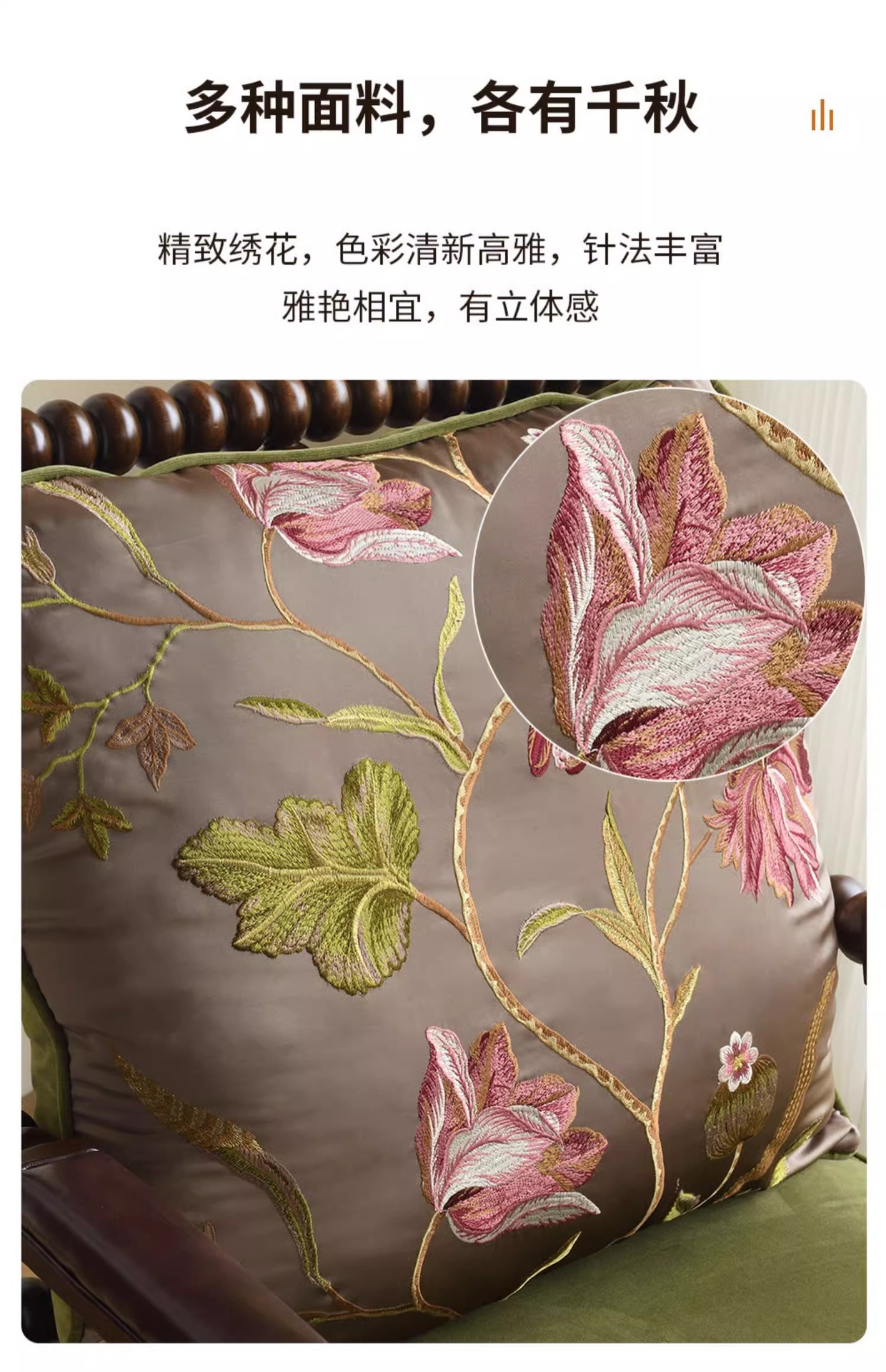 珍珠椅美式复古实木布艺单人沙发法式中古风客厅休闲椅子繁花扶手