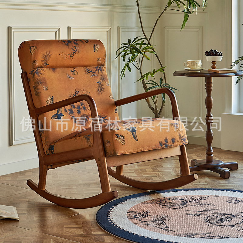 法式复古香云纱摇椅实木客厅阳台休闲躺椅小户型卧室成人摇摇椅