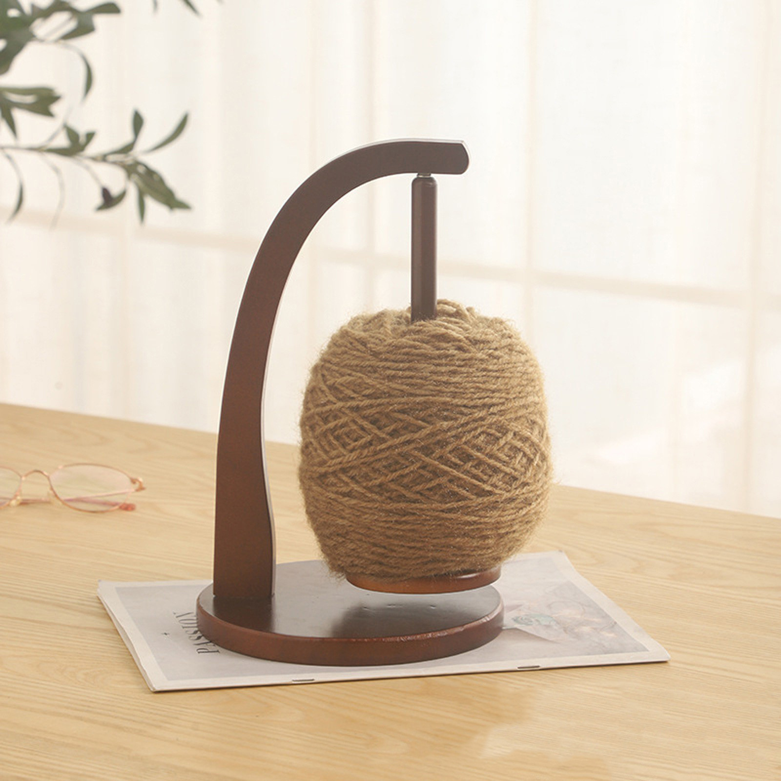 木製回転式ボビンスタンド、高性能マグネット、手編みウールスタンド、木製ウールボビン回転ツール