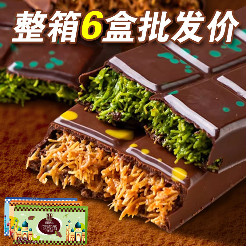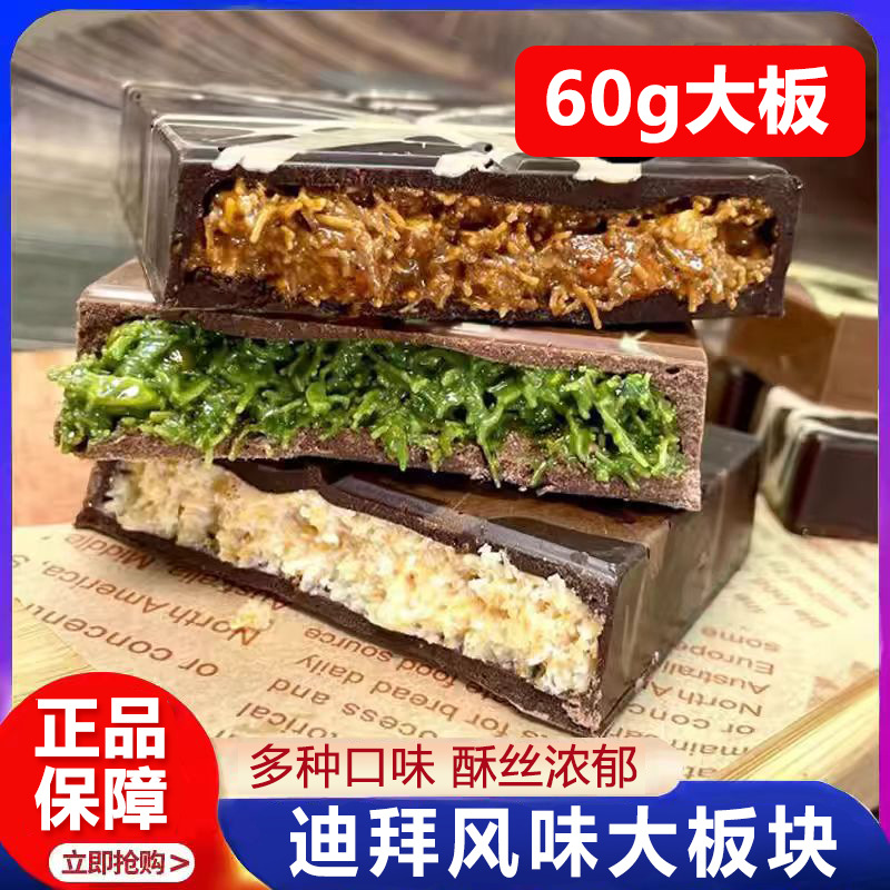 【60g大板】ドバイチョコレート手作り開心果ココナツ榛子サンドイッチ大板代カカオ脂が美しい