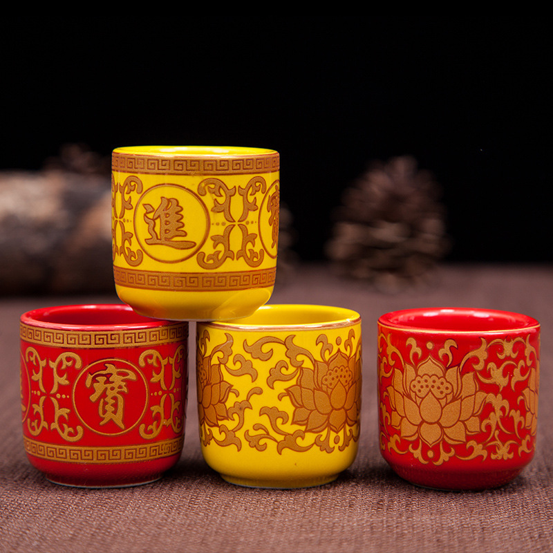 仏具用品蓮の花グラス給水カップ仏杯聖水杯財神浄水カップ黄色赤色給水カップ