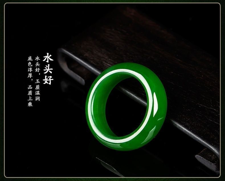 天然ホータン翡翠ジャスパーリング翡翠リング男性と女性のための翡翠リングジャスパーリングほうれん草グリーン翡翠卸売