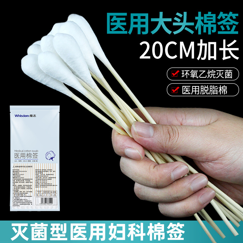 医療用使い捨て綿棒20cm超長頭脱脂綿棒自封口無菌医療用婦人科綿棒