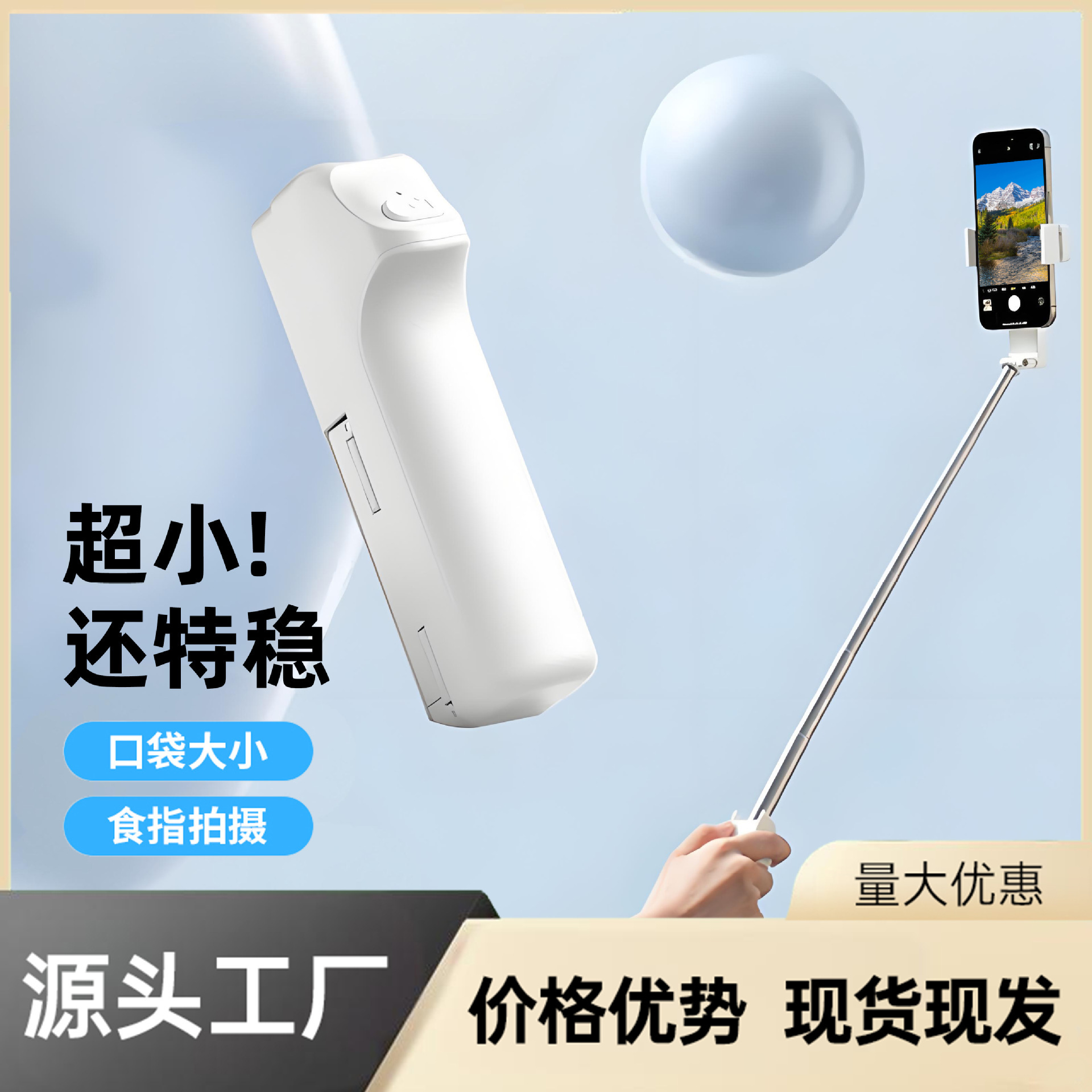 跨境迷你蓝牙自拍杆便携口袋款360° 旋转手持助拍器户外自拍神器